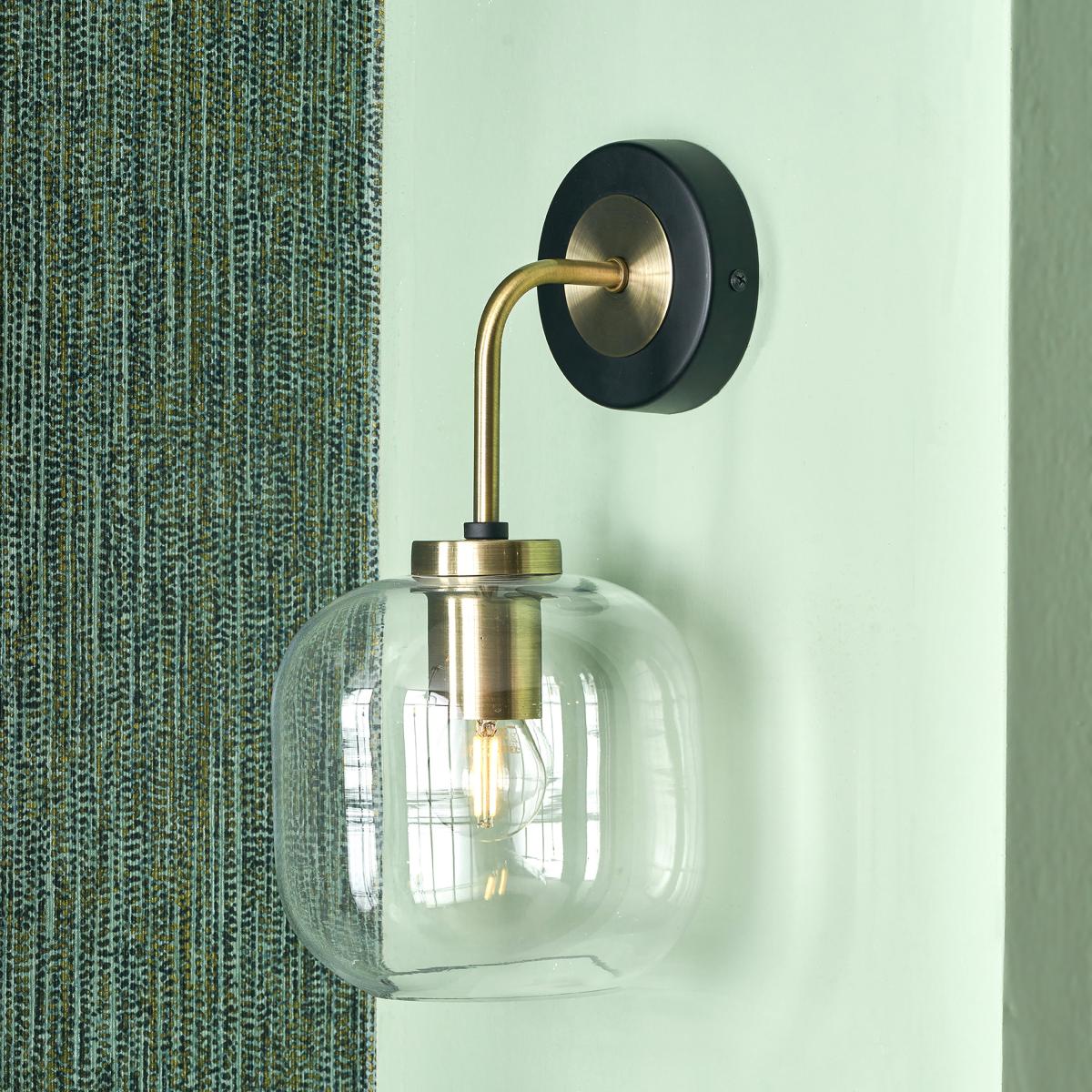 This black wall light is a versatile piece that works particularly well in contemporary and industrial interiors, thanks to its sleek design and bold colour. I love how the combination of matte black with a touch of brass adds a stylish edge without overpowering a space. It’s perfect over sideboards, in hallways, or to create a cosy reading nook. For practical styling, consider pairing it with complementary black or brass accents, and hang it at a height that provides functional lighting while highlighting its aesthetic. The transparent glass shade adds a touch of softness, making it a great statement piece that balances modern minimalism with a warm, inviting feel.