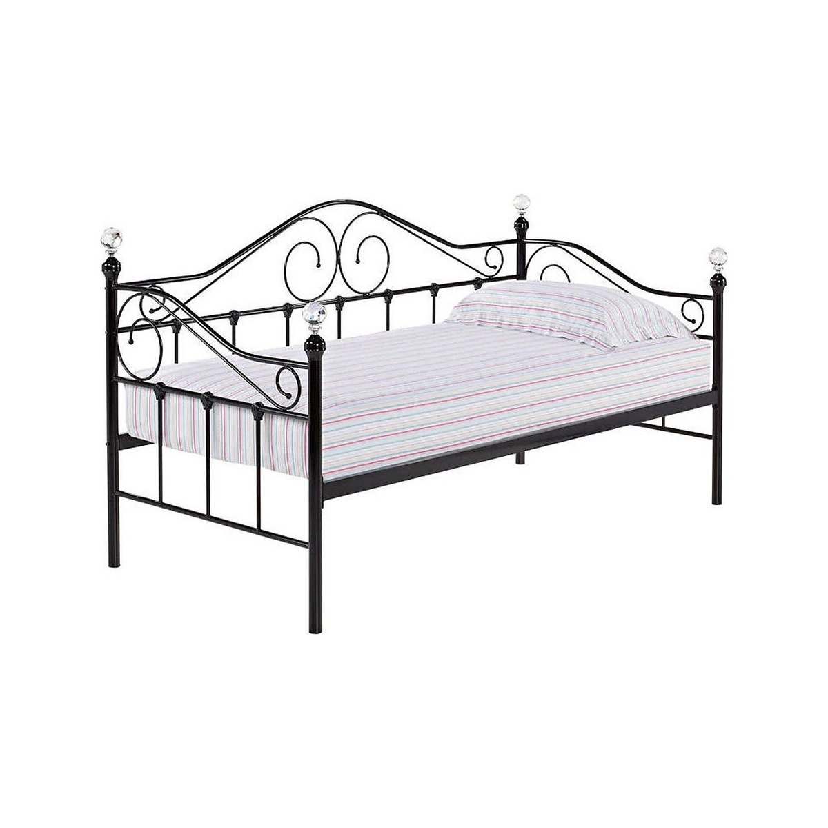 A glamorous day bed featuring beautifully sculpted crystal finials, available in black or white.