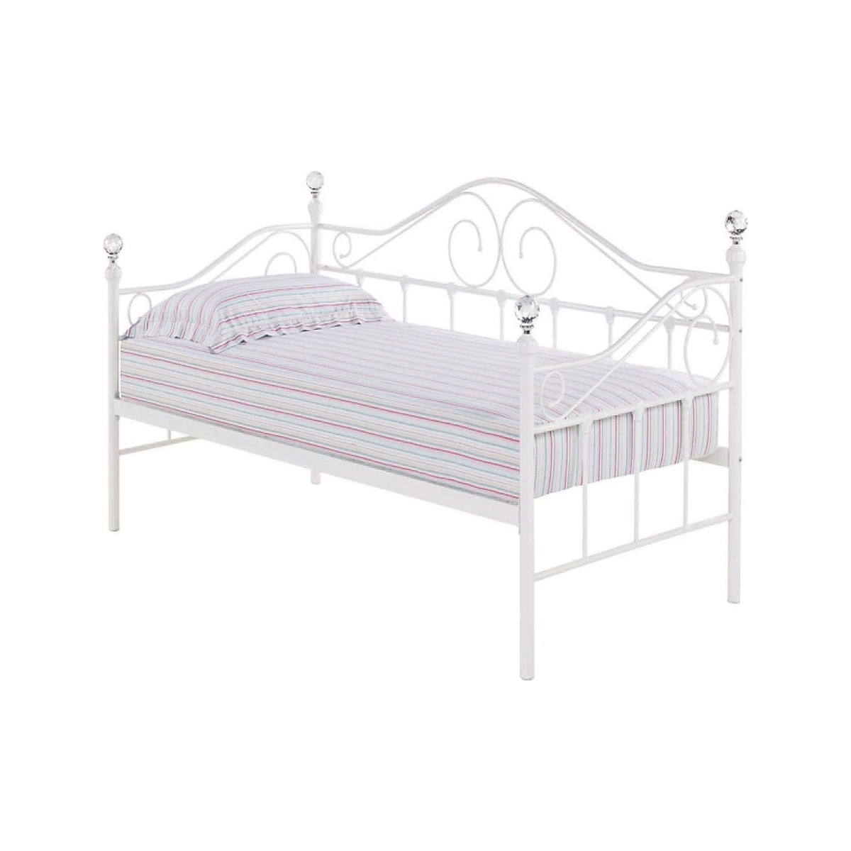 I love this white day bed for its timeless, versatile design that easily works in a variety of interiors, from shabby chic to modern cottage. Its delicate metal frame adds a light, airy feel, making it perfect for guest bedrooms, spare rooms, or a cosy lounge corner. When styling, consider layering with soft throws and decorative cushions for added comfort and visual interest. You can also personalise the look with colourful bedding or vintage-inspired accessories to give it a more eclectic feel. Its neutral tone makes it easy to integrate with various colour schemes and decor styles, offering both practicality and aesthetic charm.