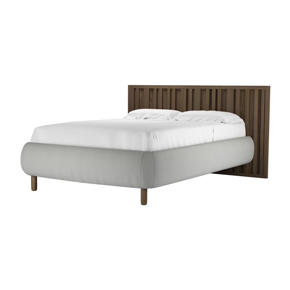 I love this bed frame for its modern yet timeless appeal, especially with the warm wooden headboard which adds a natural, comforting touch. It works well in both contemporary and Scandinavian-style interiors, particularly when paired with neutral tones or soft textiles to create a calm sanctuary. Practical styling tips include layering with cosy bedding and textured throws to soften the look, as well as incorporating bedside tables and lighting for a functional, welcoming bedroom scheme. The organic cotton detailing adds an eco-conscious element, making it ideal for those seeking both style and sustainability in their space.