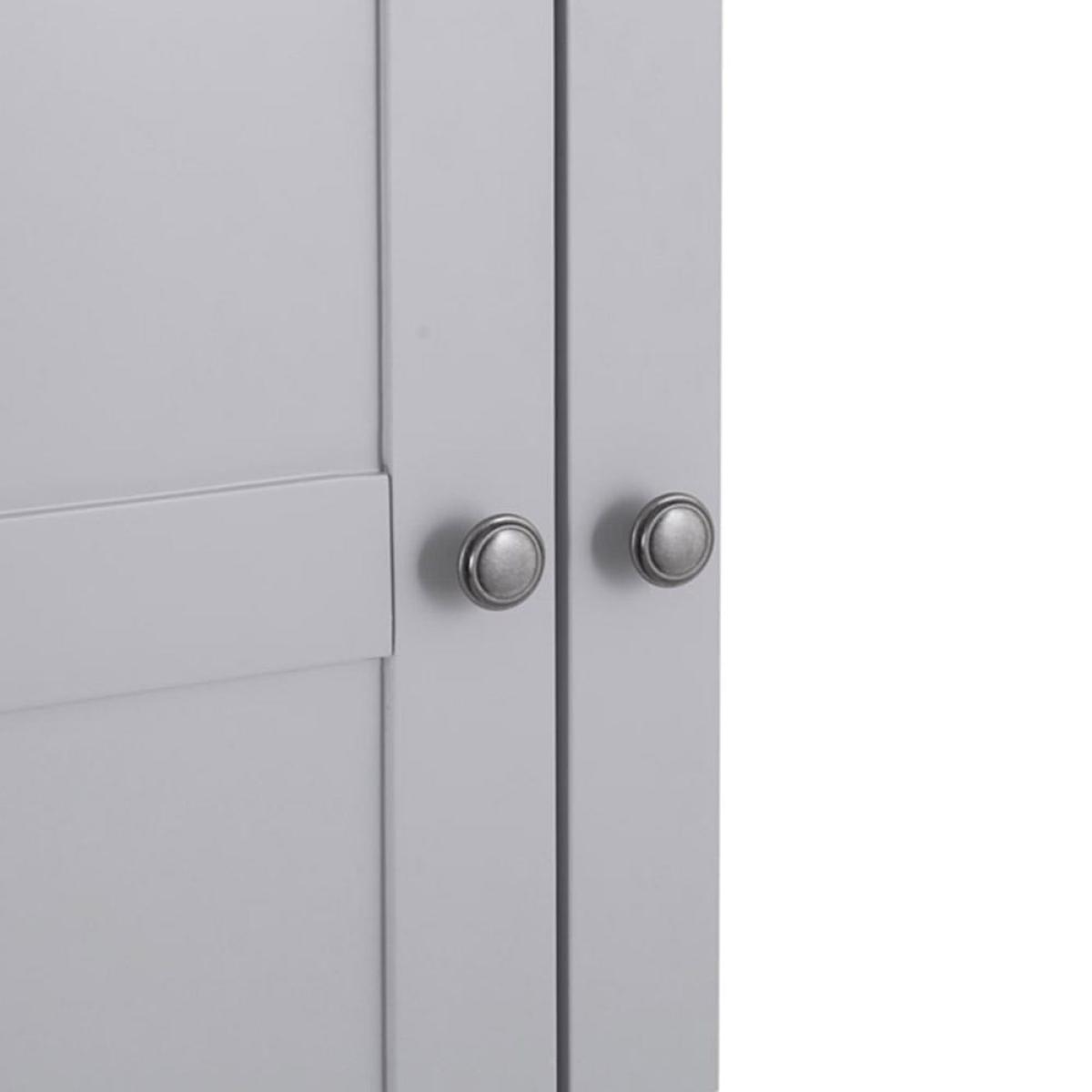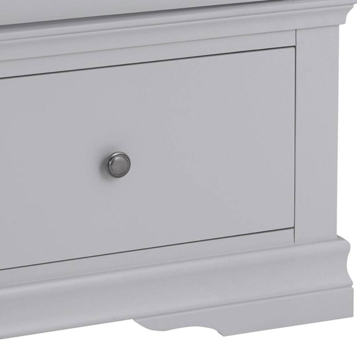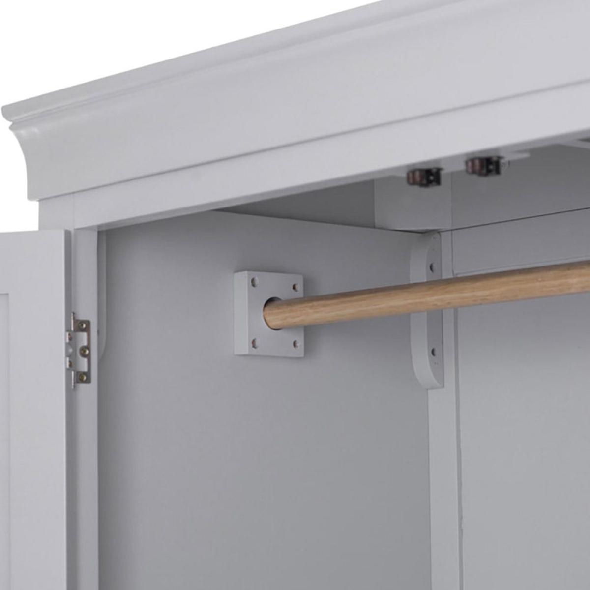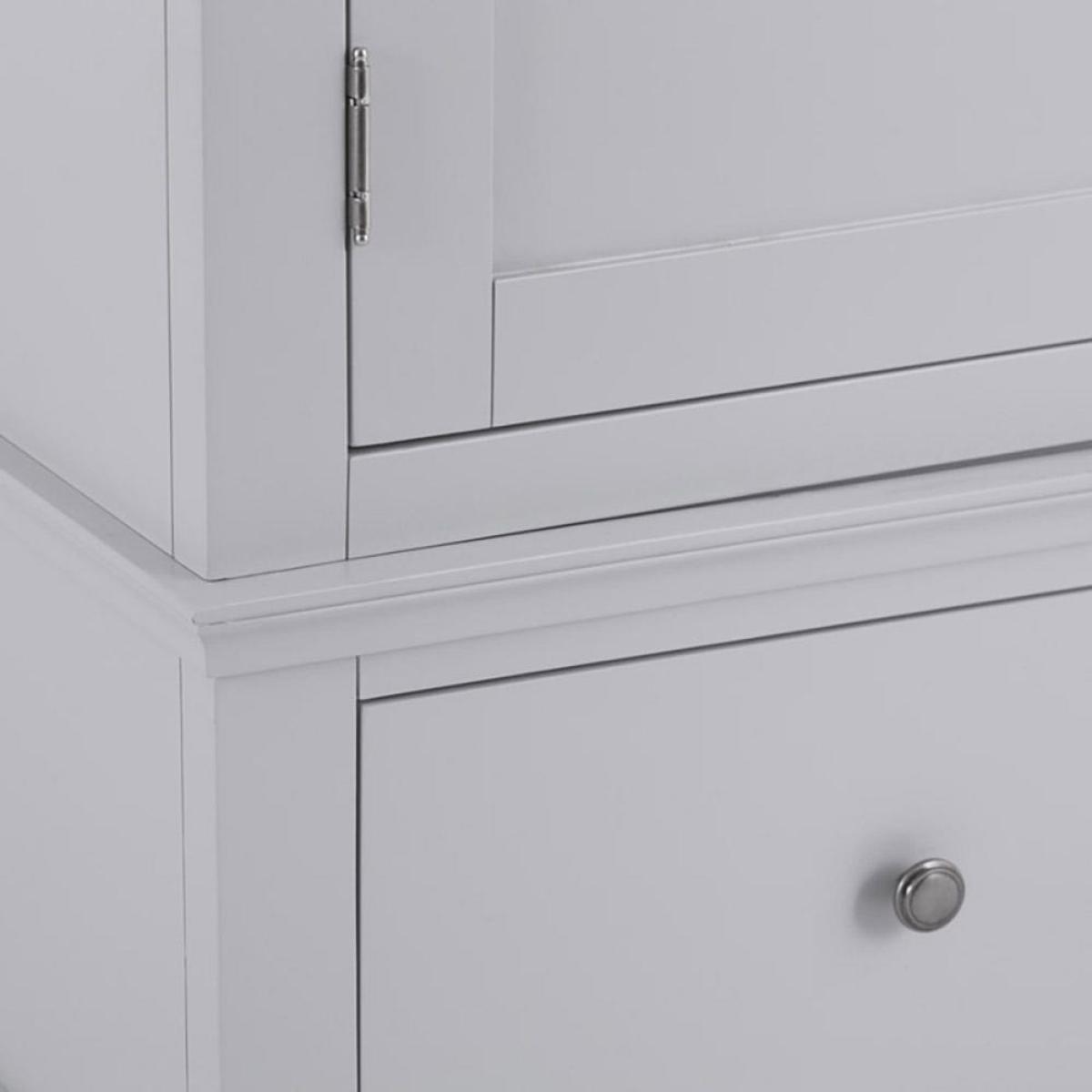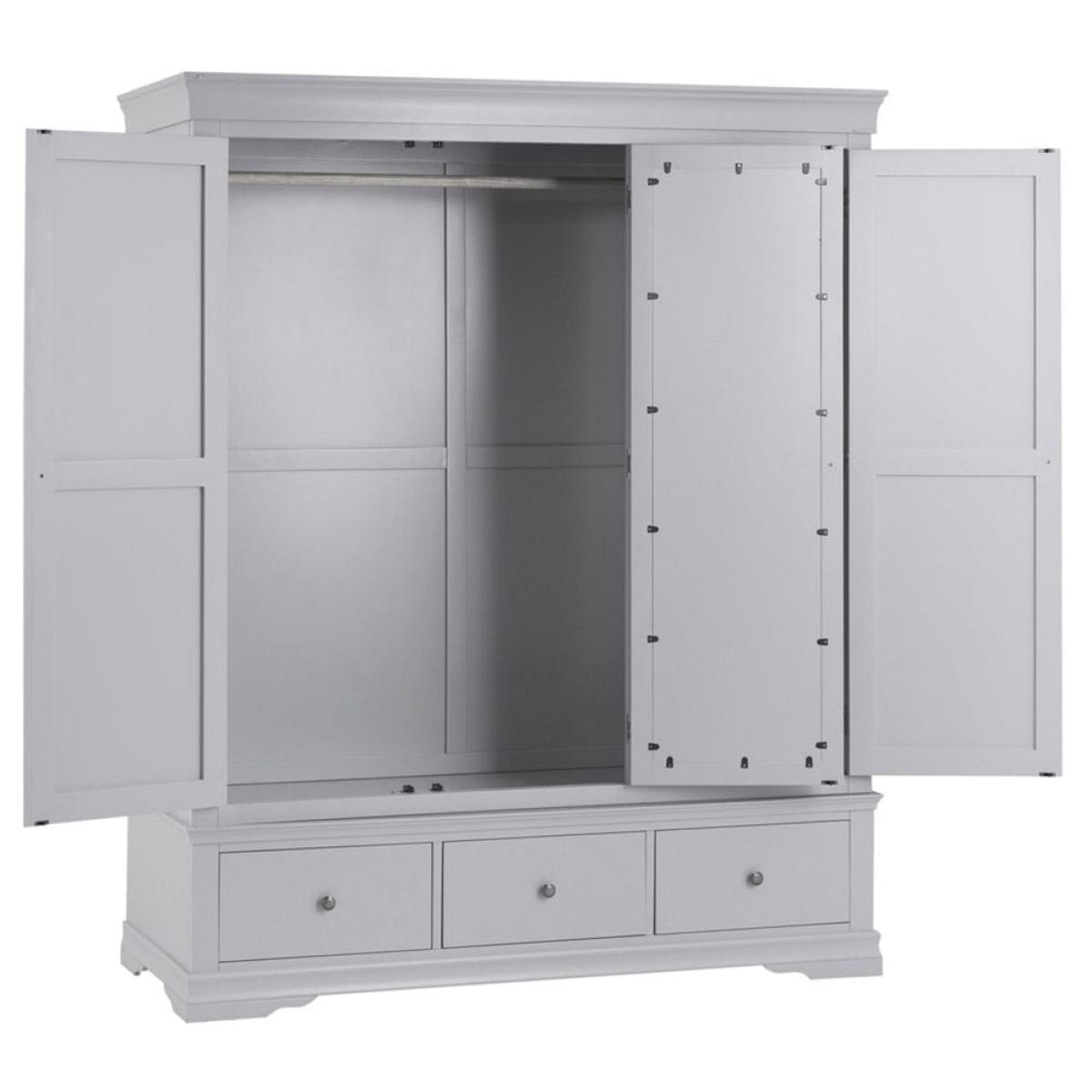 Dare to go the extra mile on clothes storage space with the Florence grey painted three door wardrobe with mirror. Standing on period-style bracket feet, this 170cm-wide wardrobe is an impressive bedroom centrepiece. You’ll find plenty of hanging space behind its triple doors for all your glad rags – and a convenient mirror on the central door so you can check you’re looking the part once you’ve put them on. The neutral grey paint is brilliantly complemented by bold features such as the pewter handles and cornice detailing along the top. This is a wardrobe built to suit both contemporary and classic interiors.