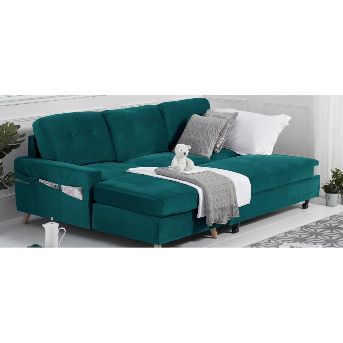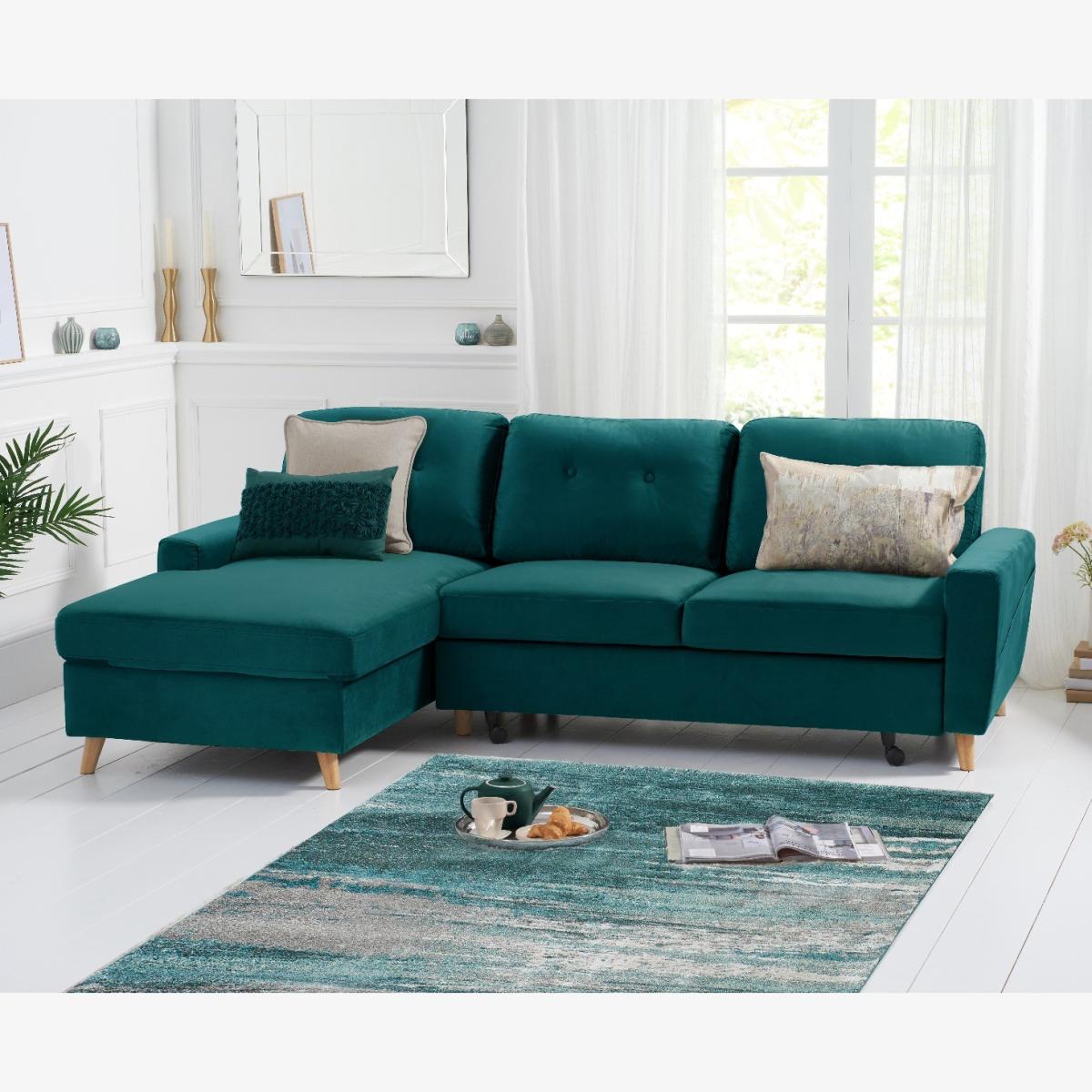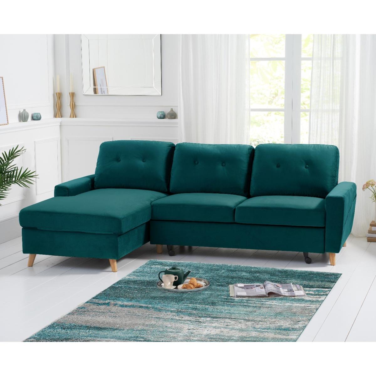 Florence Left Facing Chaise Sofa Bed in Green Velvet