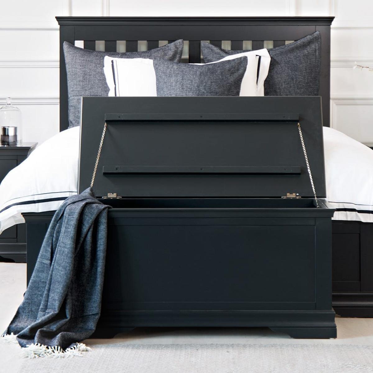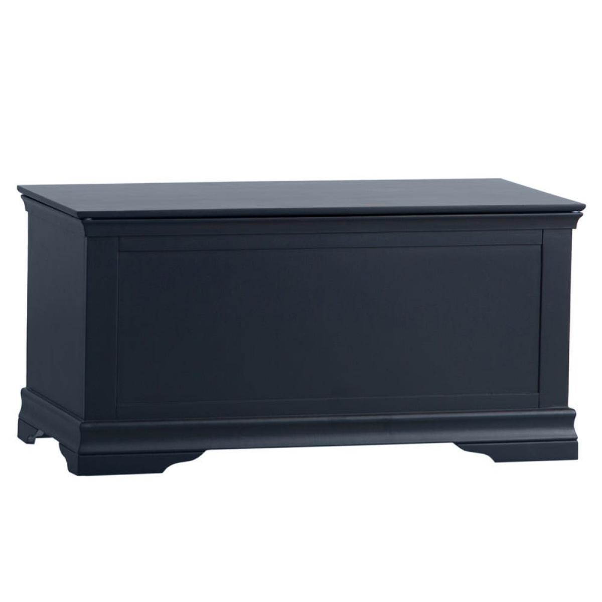 Store everything you need to keep your home – and you – feeling cosy in the Florence midnight grey painted blanket box. Finished in a rich shade of deepest grey, this blanket box will add tranquil tones to your existing bedroom interior. From its cornice edged top surface to its opulent bracket feet, this is a finely crafted piece of furnishing. Its roomy interior is 33cm deep, so there’s room to fold and stack thick spare blankets, pressed bed linen, and maybe a patterned cushion or two. Placed at the foot of your bed, an extra warm layer will be within easy reach on those chilly winter nights.