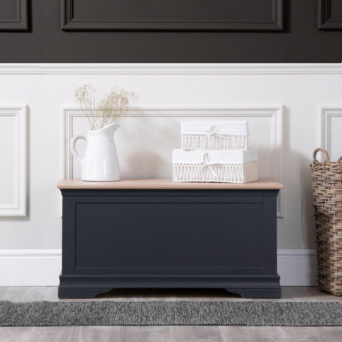 Florence Midnight Grey Painted Oak Blanket Box