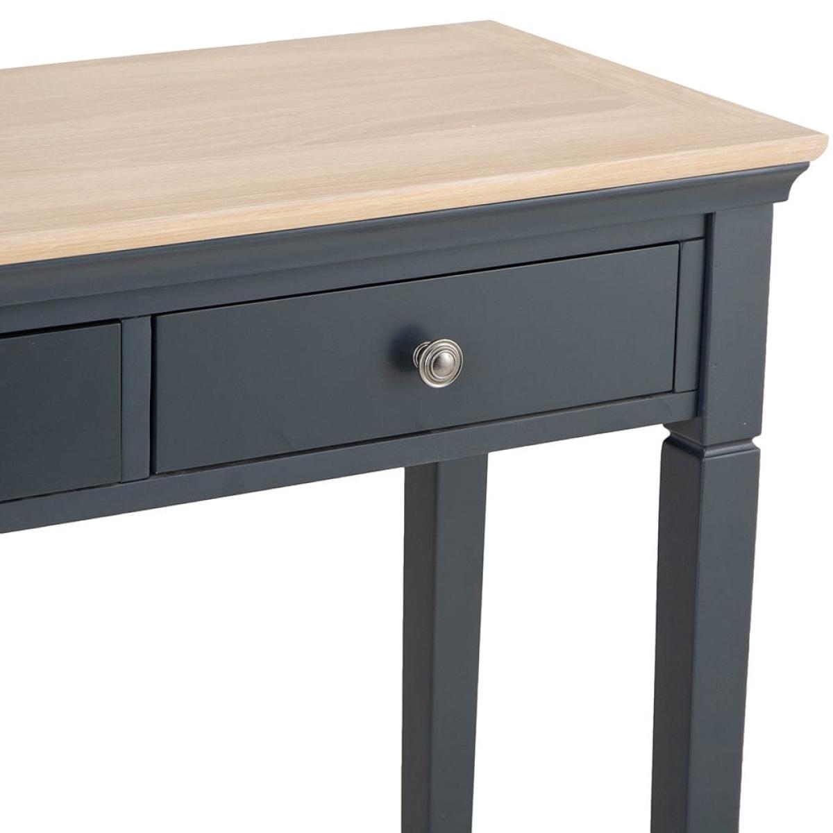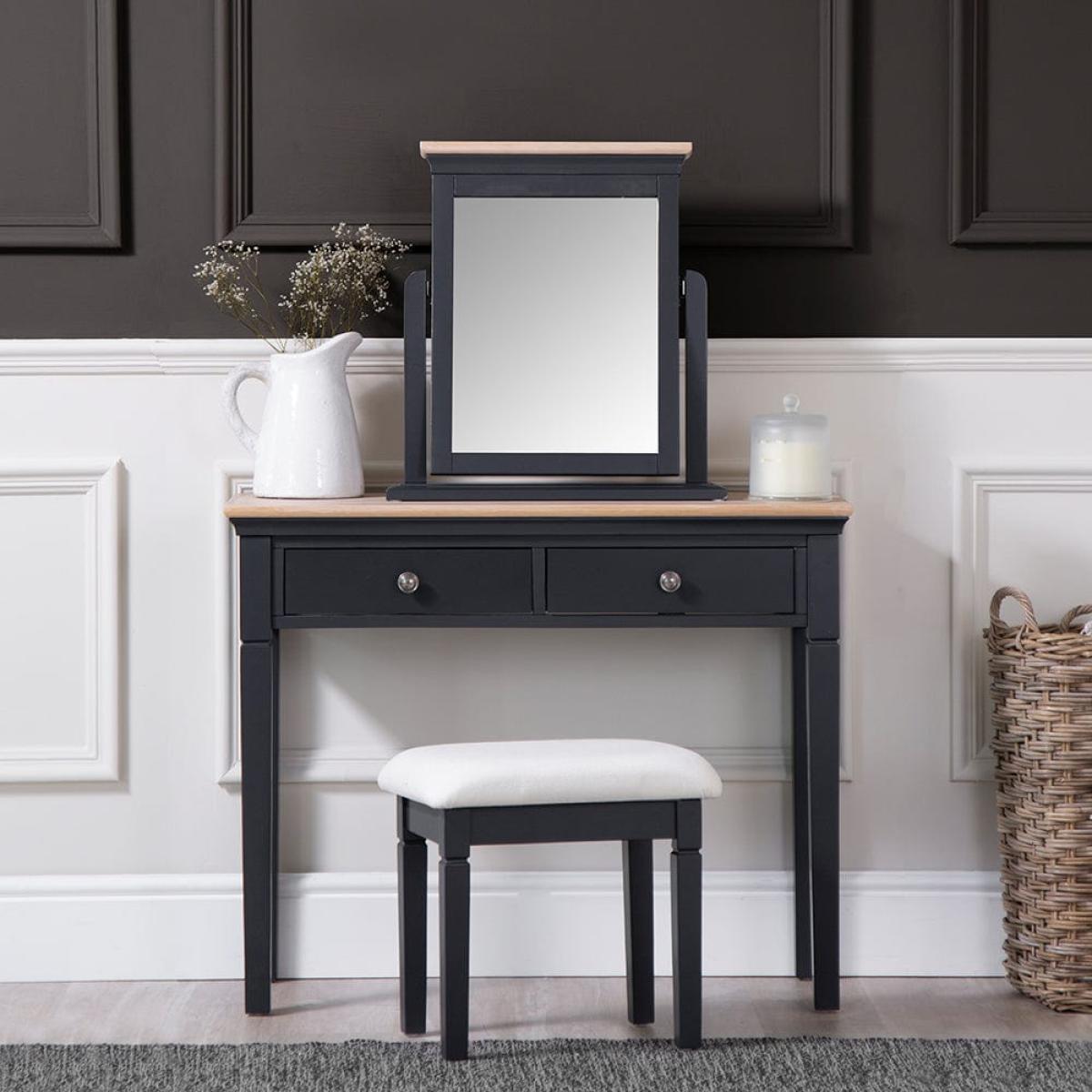 I love the Florence Midnight Grey Painted Oak dressing table for its versatile colour and elegant design, making it an excellent addition to both traditional and contemporary interiors. Its muted grey tone pairs beautifully with soft pastels, bold colours, or monochrome schemes, allowing for flexible styling. Practical tips include keeping accessories minimalist to highlight the table’s sleek finish or adding vintage-style Mirrored pieces for a touch of glamour. It works well in bedrooms that favour a calm, sophisticated vibe, especially when paired with soft lighting and simple decorative accents. The compact size also makes it ideal for smaller spaces without compromising on functionality or aesthetic appeal.