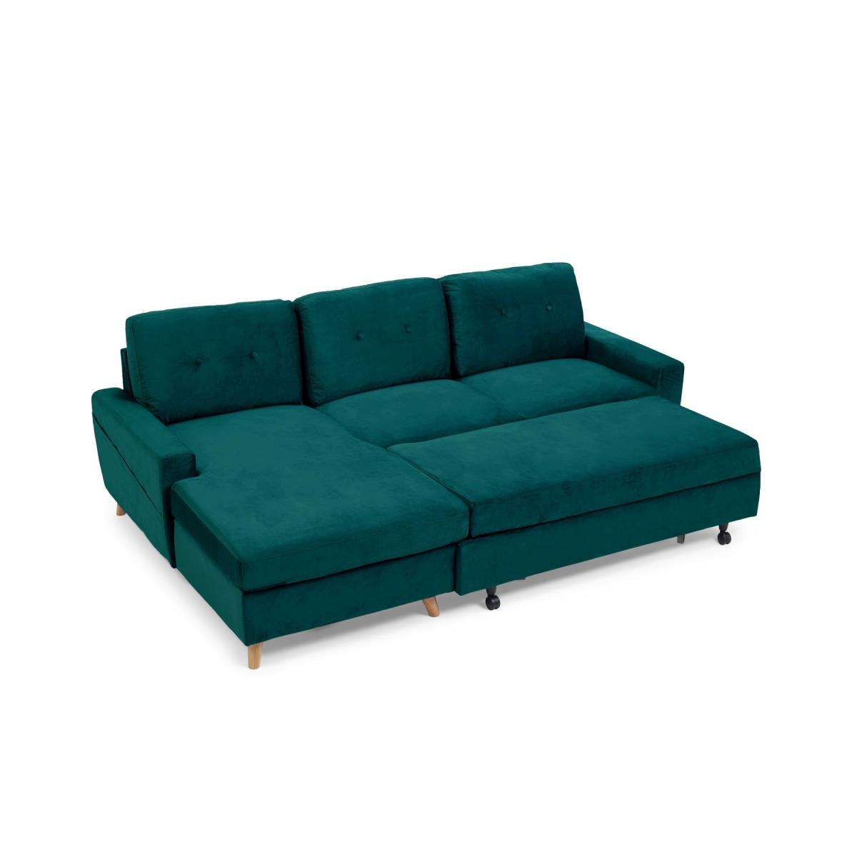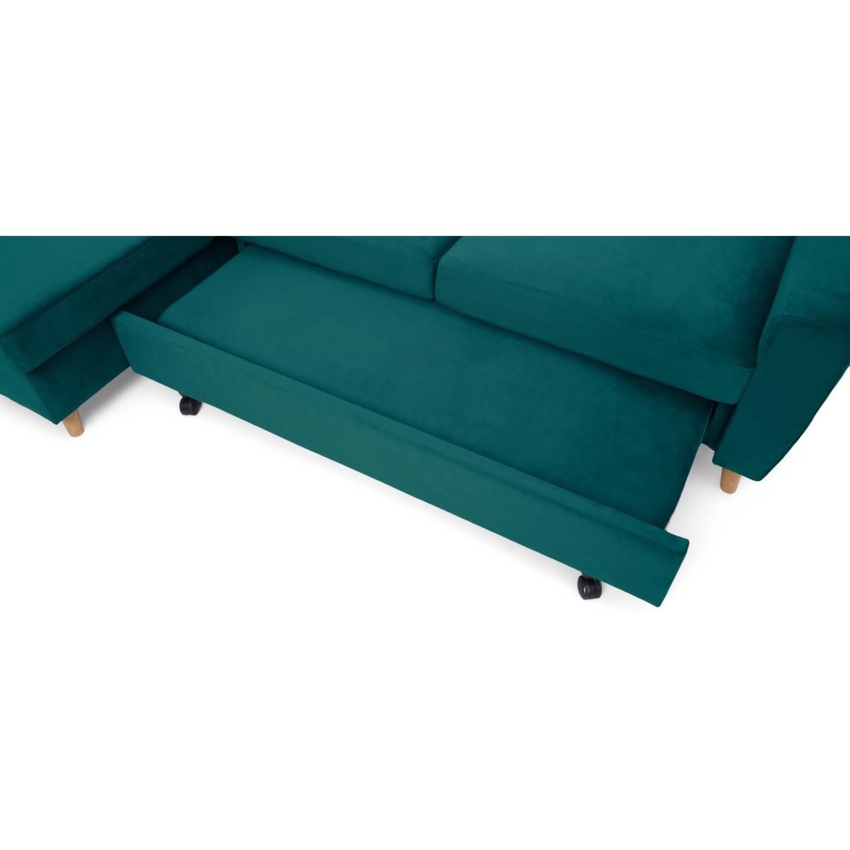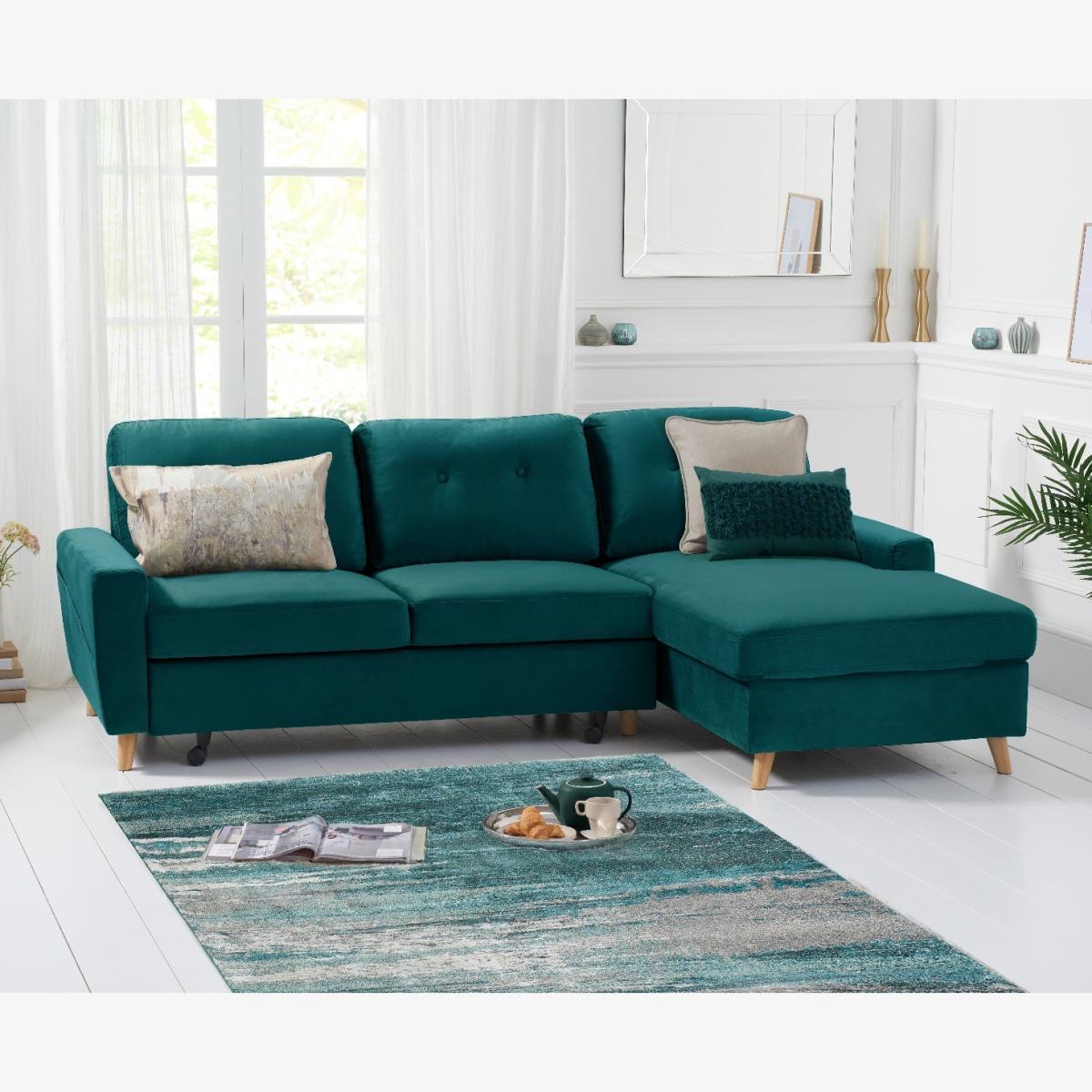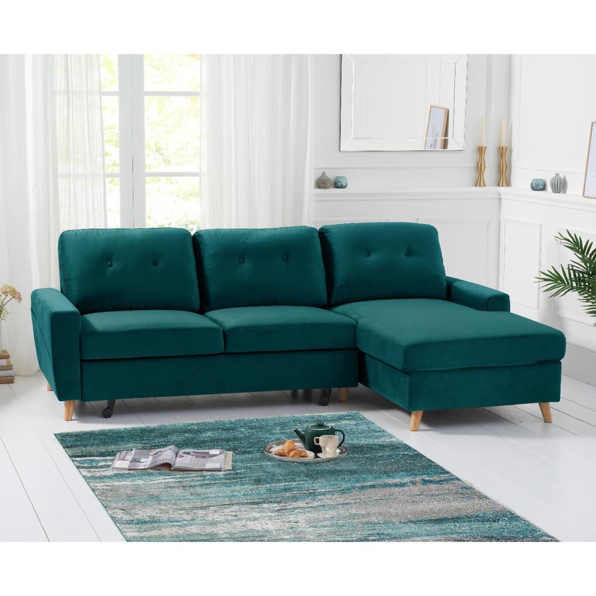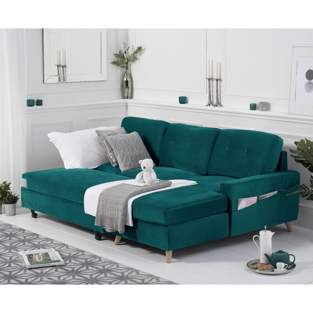 Florence Right Facing Chaise Sofa Bed in Green Velvet