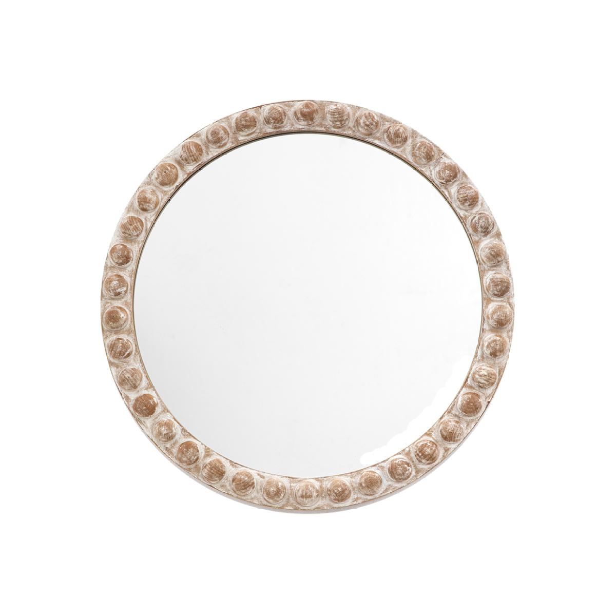 With a rustic weathered finish and round detailing, the Florence Mirror won't go unnoticed. Hang this mirror in your entryway to welcome guests or in your living room for an instant focal point.
