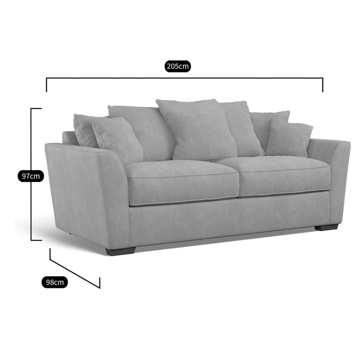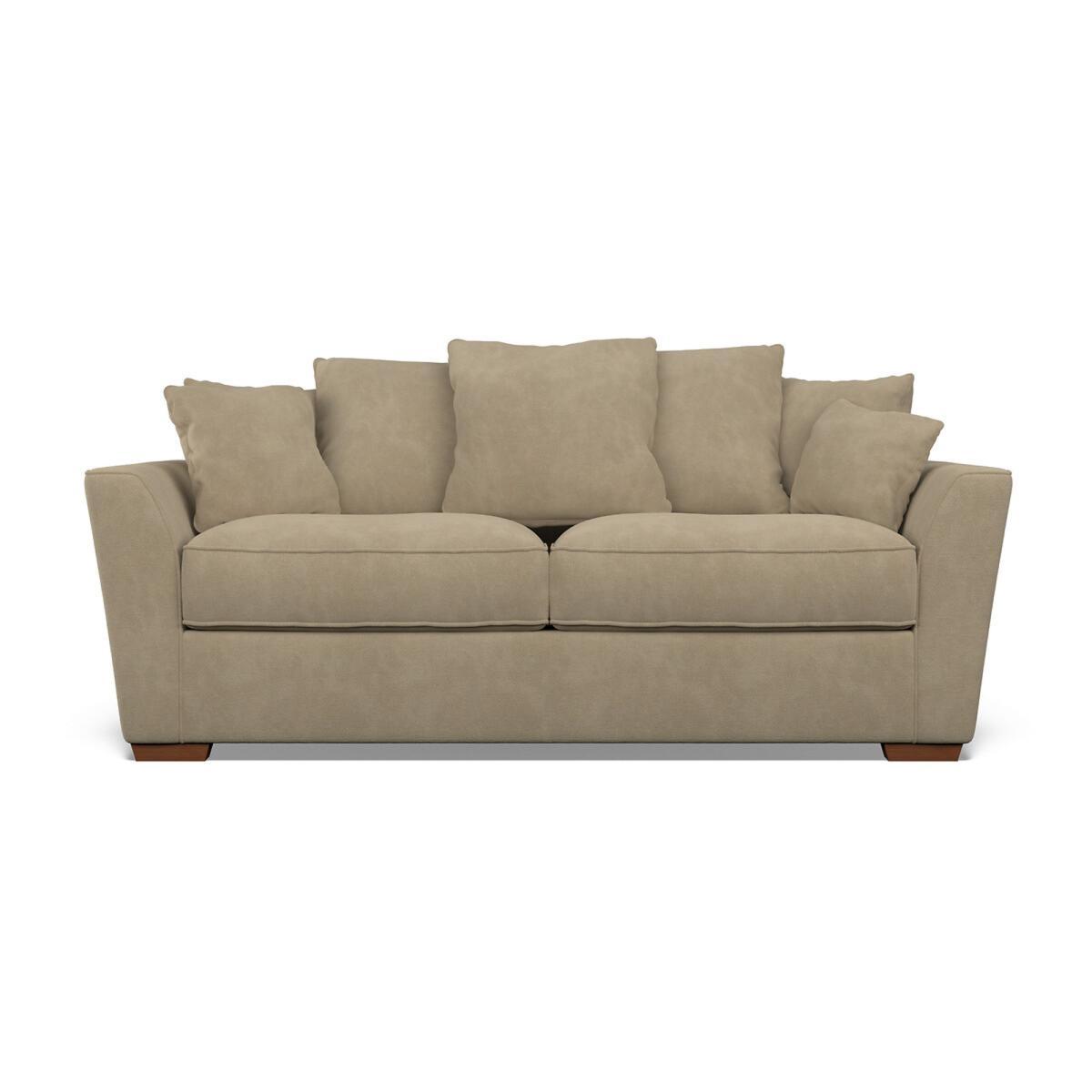 Lean back and relax….the Florence Scatterback is the ultimate deep sofa with an abundance of plump cushions. Take a moment to appreciate the elegant shape and dive right in. Choose from our soft brushed fabric for ultimate coziness, or woven for a textured look. With matching scatter cushions for extra comfort and style. All made to order sofas are carefully manufactured in the UK.Each hardwood frame is dowelled, glued, and screwed before being paired with the finest fabrics and fillings. And it doesn't stop there - for customer peace of mind and safety, all frames and fabrics are rigorously examined, inspected, and tested to the highest standards. Product Specifications:. Product Dimensions: L98cmxW205cmxH9. 7cm. Fabric: Soft Brushed - 100% Polyester. Feet: Dark Wood. Scatter Cushions: 2 Fibre filled Scatter Cushions included in matching fabric. Extraflex high comfort seat cushions - A high density foam base seat interior with a hand-rolled carded fibre, channelled topper which provides both softness and support. Superloop back springs. Serpentine seat springs & silent wire. Care Guide :Extraflex seat cushions should be plumped up on a regular basis to help maintain the aesthetical appeal of your upholstery, the plumping of cushions is essential to help retain the comfort and softness of any piece of upholstered furniture. To improve the longevity of your hand-made furniture, we recommend rotating cushions (where applicable).For further information on maintaining your furniture please refer to the care guide located under the seat platform. Packaged Dimensions: 207cmx100cmx99cm - Please remember to measure your available space before ordering. The Florence Range is also available in Woven & Textured Woven in a variety of colours. It is also Available in a Standard Cushion Back style. This product will be dispatched by one of our trusted suppliers. You’ll be contacted by their selected courier about your delivery. Your product will be delivered to your room of Choice. All multi part items and feet will be assembled once delivered.