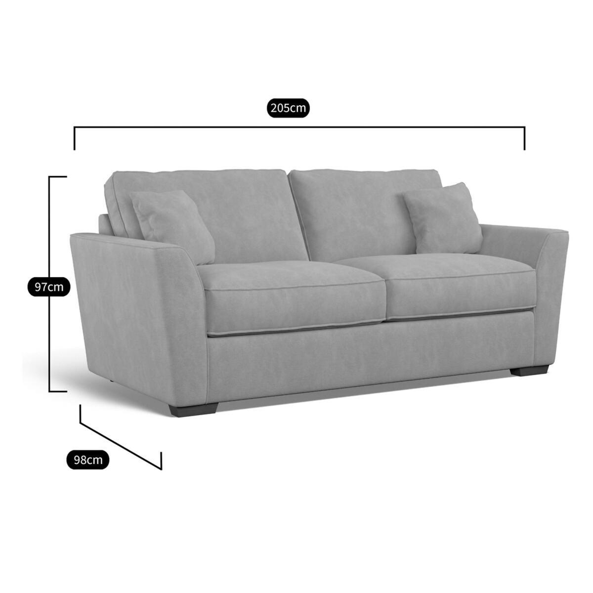 Lean back and relax….the Florence is the ultimate deep sofa with the softest high back and the plumpest of cushions. Take a moment to appreciate the elegant shape and dive right in. Choose from our soft brushed fabric for ultimate coziness, or woven for a textured look. With matching scatter cushions for extra comfort and style. All made to order sofas are carefully manufactured in the UK.Each hardwood frame is dowelled, glued, and screwed before being paired with the finest fabrics and fillings. And it doesn't stop there - for customer peace of mind and safety, all frames and fabrics are rigorously examined, inspected, and tested to the highest standards. Product Specifications:. Product Dimensions: L98cmxW205cmxH9. 7cm. Fabric: Soft Brushed - 100% Polyester. Feet: Dark Wood. Scatter Cushions: 2 Fibre filled Scatter Cushions included in matching fabric. Extraflex high comfort seat cushions - A high density foam base seat interior with a hand-rolled carded fibre, channelled topper which provides both softness and support. Superloop back springs. Serpentine seat springs & silent wire. Care Guide :Extraflex seat cushions should be plumped up on a regular basis to help maintain the aesthetical appeal of your upholstery, the plumping of cushions is essential to help retain the comfort and softness of any piece of upholstered furniture. To improve the longevity of your hand-made furniture, we recommend rotating cushions (where applicable).For further information on maintaining your furniture please refer to the care guide located under the seat platform. Packaged Dimensions: 207cmx100cmx99cm - Please remember to measure your available space before ordering. The Florence Range is also available in Woven & Textured Woven in a variety of colours. It is also Available in a Scatterback style. This product will be dispatched by one of our trusted suppliers. You’ll be contacted by their selected courier about your delivery. Your product will be delivered to your room of Choice. All multi part items and feet will be assembled once delivered.