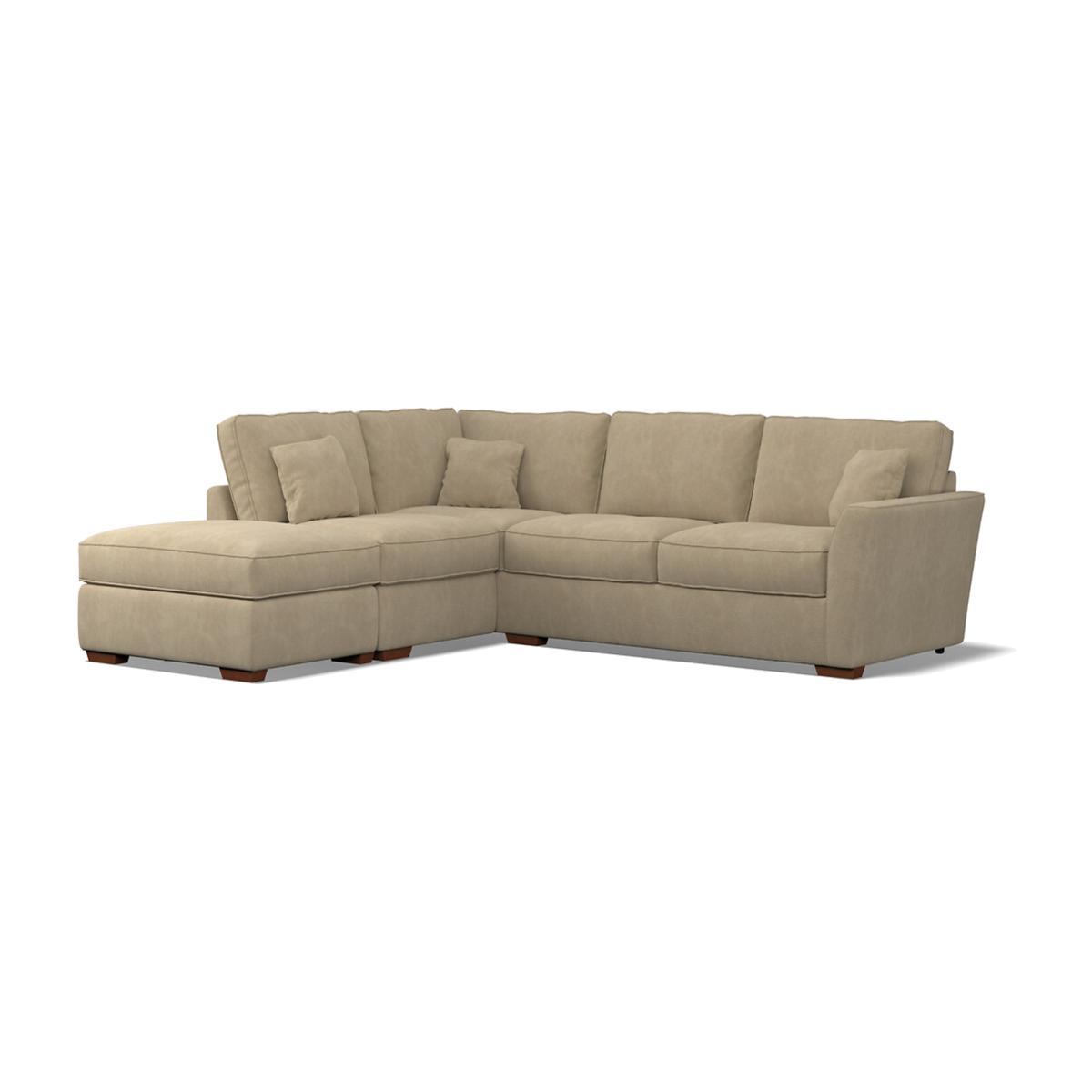Florence Soft Brushed Left Facing Corner Sofa & Footstool with Dark Brown Wood Legs