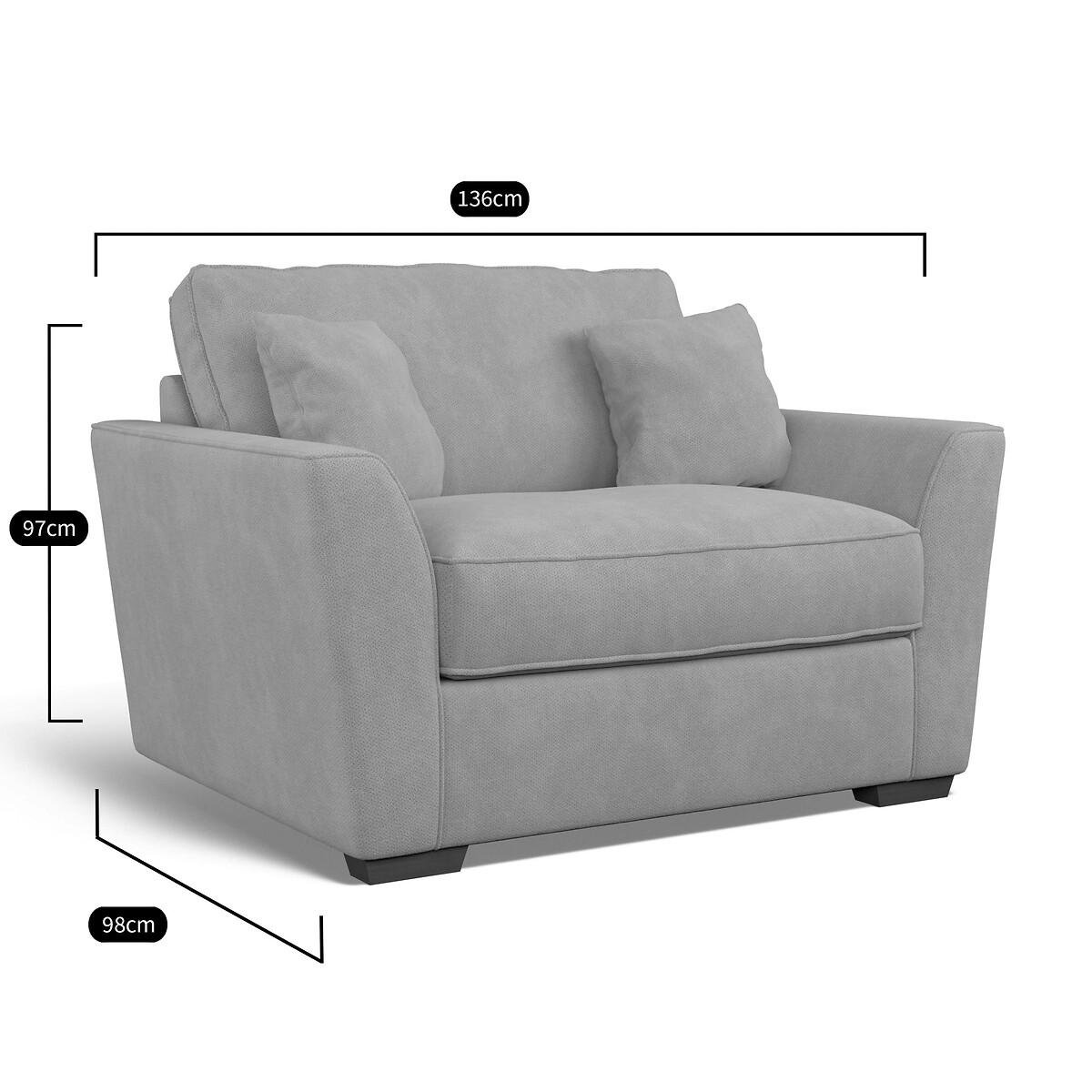Deliciously spacious for one, or perfect for cuddling up together. Lean back and relax….the Florence is the ultimate deep loveseat with a supportive high back, classic in design and never out of style. Sturdy flared arms with a flattened top are perfect for perching a cup of tea. The high-comfort foam seat fillings are not only comfy but have great durability, keeping their shape over time with little care needed. Choose from our soft brushed fabric for ultimate cosiness, or woven for a textured look. Match with the Florence footstool, or choose a bigger size with the 2 seater, 3 seater, or L-shaped corner sofa. Product details• Soft Brushed - A cosy and practical flat and soft weave featuring a gently brushed handle for a superbly snuggly seat. Check it's right for you - order a FREE swatch above.• A supportive seat with medium comfort level, underpinned by a spring frame for durability.• Extraflex© high comfort seat cushions have a special hybrid filling made up of a thick layer of resilient foam, topped with a generous layer of super soft aerated fibre, meaning they are firm in the centre but have a pillowy comfortably layer of softness. • Back cushions full of aerated fibres provide softness and give you that "sink in" feeling.• Scatter cushions included as pictured in matching fabric. Fibre filled (x2). • Solid beech wood feet.• Serpentine seat springs & silent wire.• Superloop back springs.• Solid hardwood frame.• Removable covers (both seat and back)• Removable feet.• Lovingly handmade in the UK.All our made to order sofas are carefully manufactured in the UK.Each hardwood frame is dowelled, glued, and screwed before being paired with the finest fabrics and fillings. And it doesn't stop there - for customer peace of mind and safety, all frames and fabrics are rigorously examined, inspected, and tested to the highest standards. All filling material(s) and covering fabric(s) meet the requirements for resistance to cigarette and match ignition in the 1988 safety regulations. A 2 year manufacturers warranty from date of delivery (guarantee of replacement of any faulty goods subject to the product having been used under normal conditions for its intended purpose)Product composition• Fabric- Soft Brushed (100% polyester)• Seat Fillings - Extraflex foam• Back Fillings - Blown fibre• Feet - solid beech wood• Frame - solid hardwood Product Dimensions Overall width: 136 cm. Overall depth: 98 cm. Overall height: 97 cm. Seat height: 56 cm. Seat depth: 55 cm. Seat width between the arms: 90 cm. Back height (from base): 93 cm. Back height (from seat): 42 cm. Arm height (from floor): 68 cm. Arm height (from seat): 13 cm Clearance to floor (leg height): 4.5 cm. Small scatter cushions x 2: 45 cm x 45 cm. Please remember to measure your available space before ordering to be sure your sofa will fit. Don't forget to measure accessways and corners, and consider any obstacles. Package DimensionsL13. 8 cm x W100 cm x H99 cm, Weight 46 kg. This product will be dispatched by one of our trusted suppliers. You’ll be contacted by their selected courier about your delivery. Your product will be delivered to your room of choice. The feet of the Florence are fitted with cardboard packaging and Travel Glide protectors to keep them intact in transit. Travel Glide feet require removal on arrival. No additional tools are required. BUOYA01
