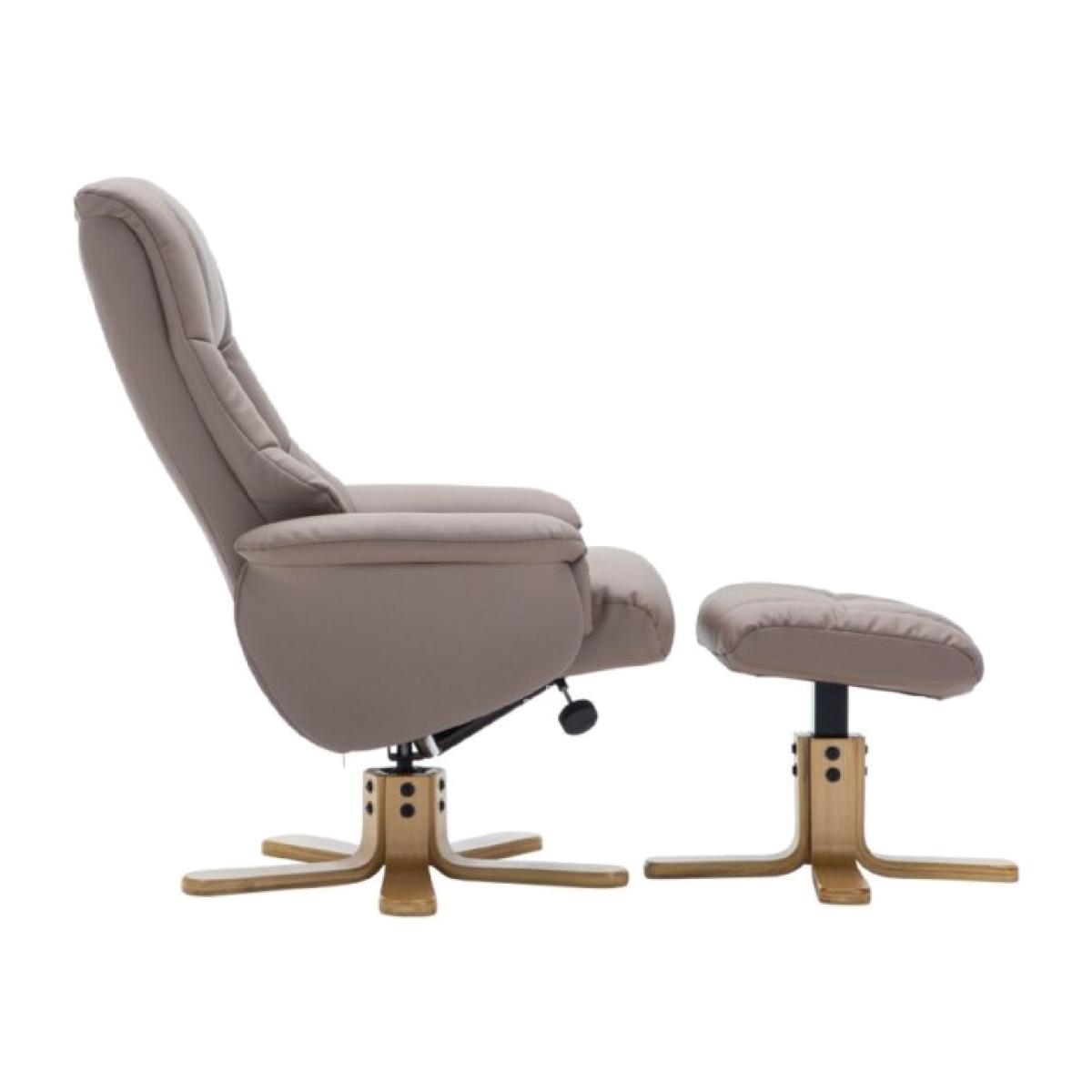 The Florence Swivel Recliner & Footstool in Bone with Mid Oak accents combines timeless elegance with modern comfort. Upholstered in a soft bone-colored fabric, this recliner offers an inviting and neutral aesthetic that complements a variety of interior styles. Its ergonomic design features an adjustable reclining mechanism for personalized relaxation, while the mid oak base adds a touch of natural warmth and sophistication. Paired with a matching footstool and smooth swivel functionality, the Florence Recliner is perfect for creating a relaxing retreat in your living space, blending style and practicality seamlessly.