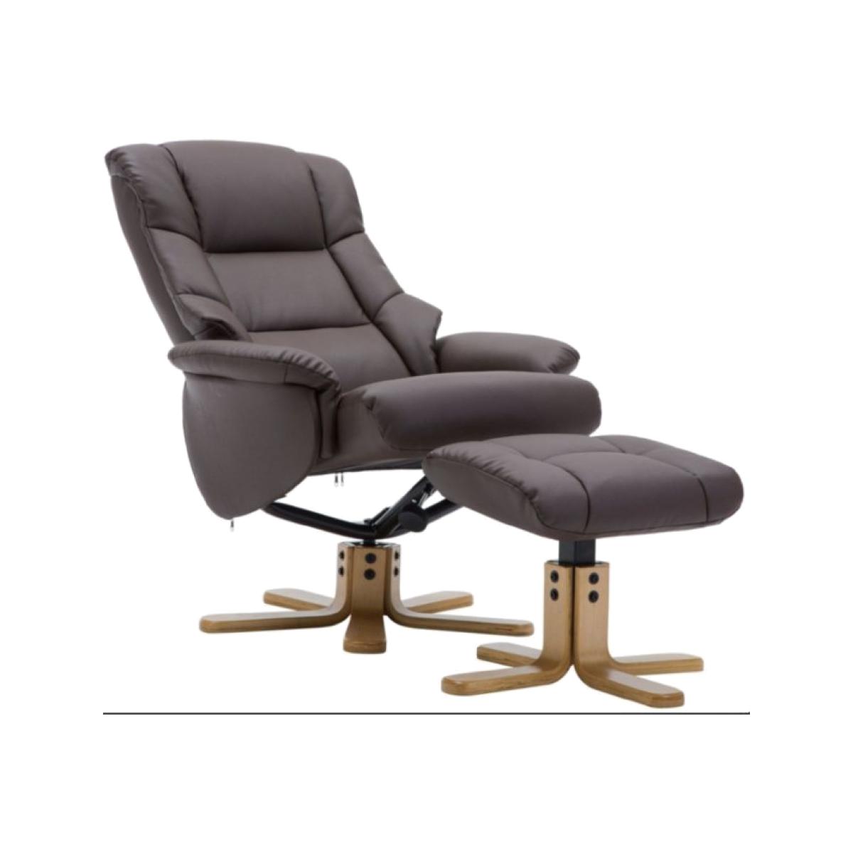 GFA’s best-selling design! The Florence swivel recliner and footstool has a touch of rich, traditional and contemporary look and feel to it. It benefits from a 360-degree swivel and an easy to use recline mechanism. Available in a selection of soft faux leather along with its plush sit, the Florence is an impressive addition to any home!. Material: Plush PU. Colour: Brown/Autumn Oak. Weight Limit KG: 115.