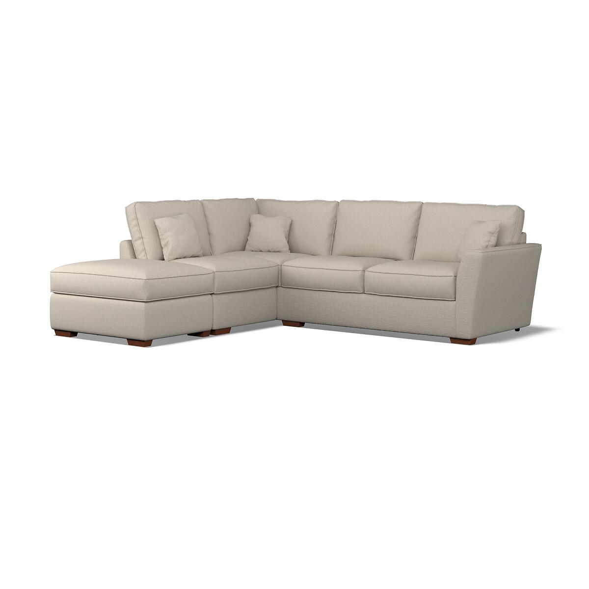 Florence Textured Woven Corner Sofa & Modular Footstool Set with Dark Brown Wood Legs (Left Facing)