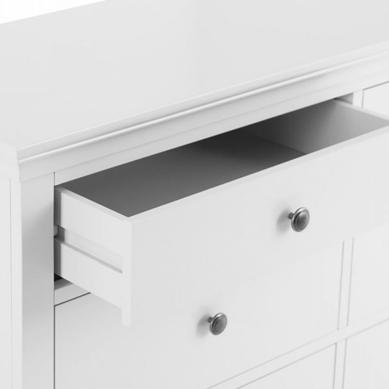 Inject some light in to your Bedroom with the gorgeous Florence White Painted Collection. The frames of each item - which feature clean straight lines, subtle detailing and stylish bracket feet typical of Georgian and Edwardian period furniture – are complimented by rounded pewter-style handles. These handles are minimalistic by design in keeping with the overall smooth and deliberately unfussy look and feel to each item. The trick with this Collection is to use brightly coloured accents and accessories to provide sharp contrast and bring each item of furniture to life. Thanks to its timeless and versatile design, the Florence White Painted Collection from Chiltern Oak lends itself to numerous interior styles, allowing you to create a calm and relaxing sleeping space regardless of the environment. As always, our prices are the lowest in the UK and won't be beaten anywhere else online or on the high street. This Collection is also available in Grey from Chiltern Oak Furniture, called Florence Grey.