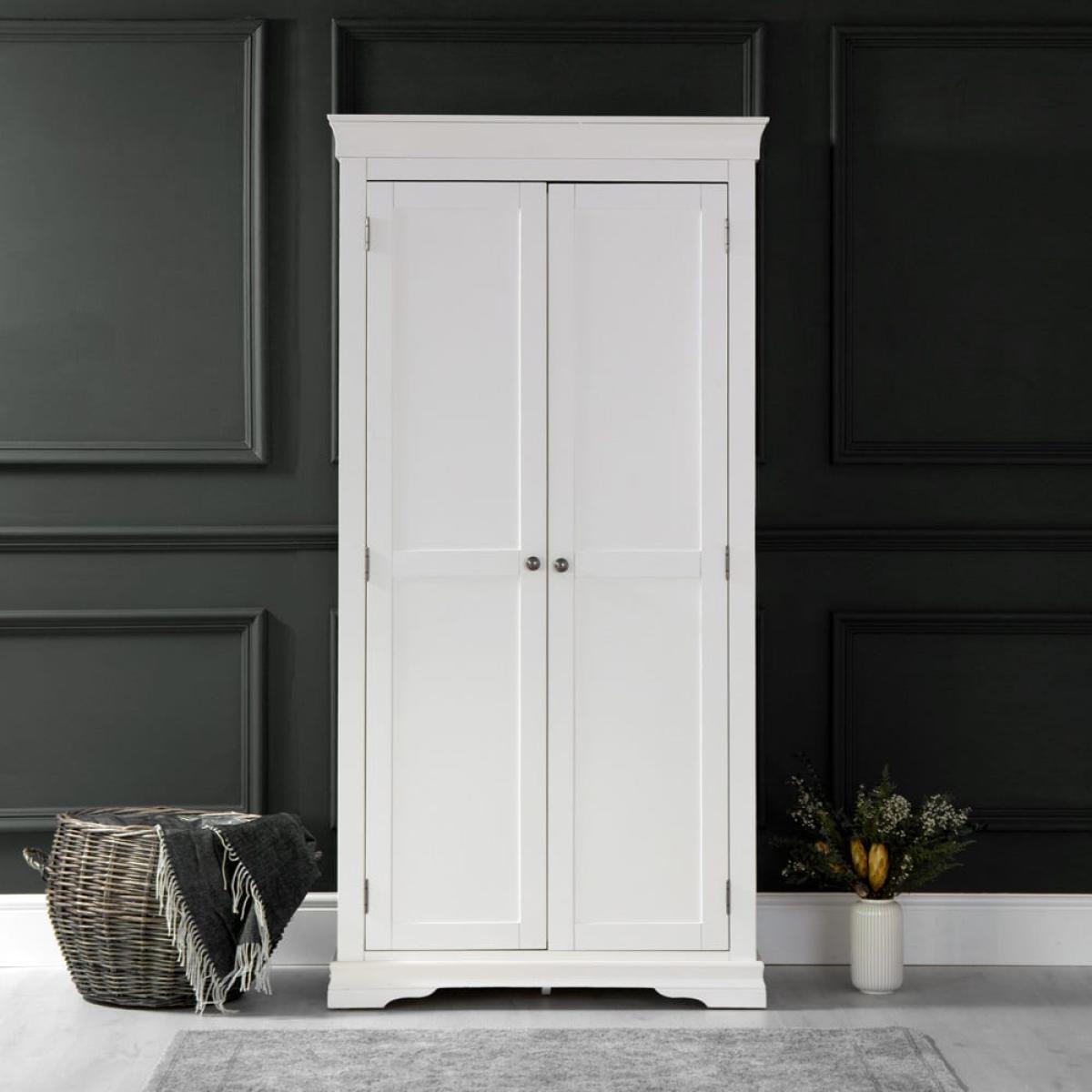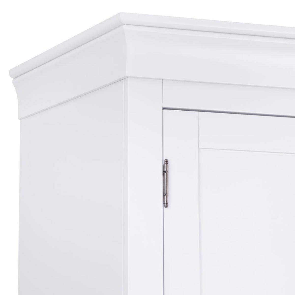 When your ensembles are streamlined and chic, your wardrobe should be too. Find a space for every outfit in our Florence white painted double wardrobe. It’s painted in an easy shade of white that means this wardrobe will go with the colours you’ve already picked out for your bedroom. And it’s a good choice if you enjoy traditional furniture, as there is understated cornice detailing that speaks to Georgian inspiration. Standing at 2 metres tall and 1 metre wide, there is plenty of space for hanging dresses and suits so they don’t wrinkle. At the bottom, there’s also a separate section for boots, shoes and trainers.