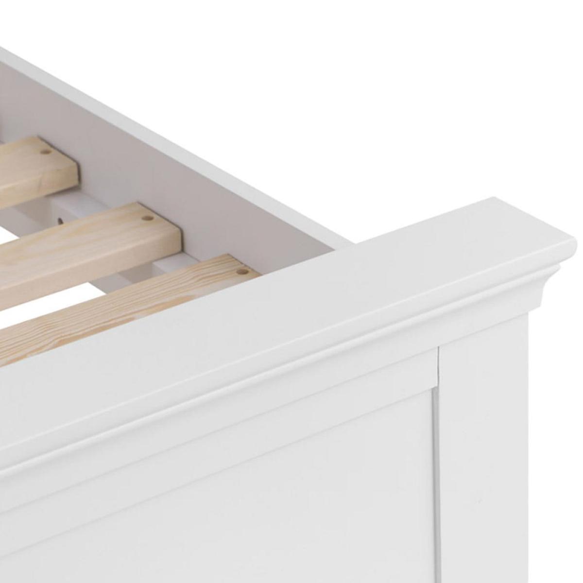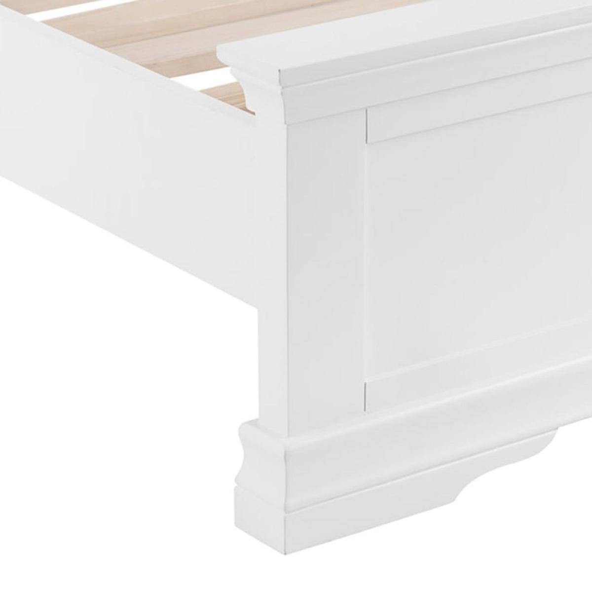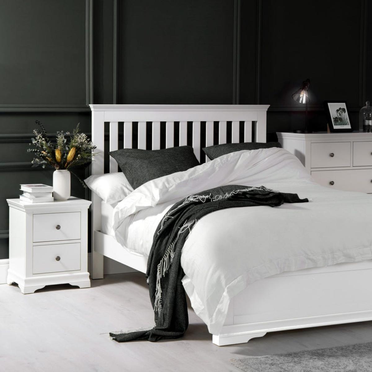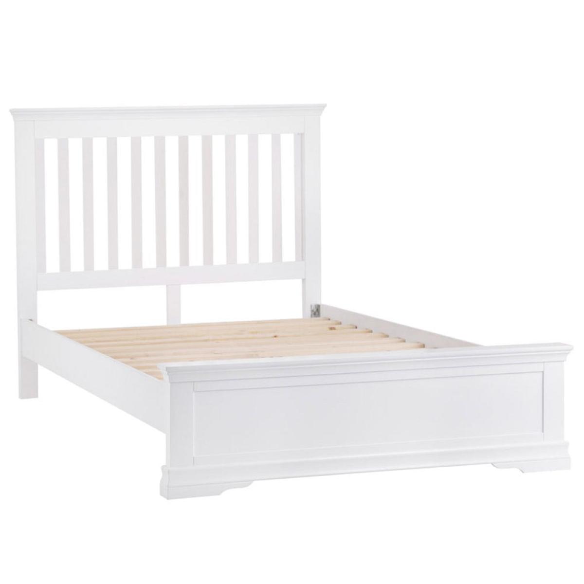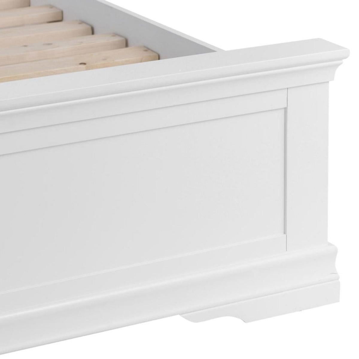 There’s plenty of space to let the whole gang snuggle up in our Florence white painted king size bed frame with a low panelled footboard. This solid wood frame is painted white, so it can bring light and airiness into your bedroom. It’s also a refined mixture of decor styles, with Georgian touches in the bracket feet and regal cornice detailing alongside modern lines and a slatted headboard. As it’s king size, there’s loads of room for your smaller visitors to wriggle in when they wake up - as well as a low panelled footboard so everyone can spread out in comfort.