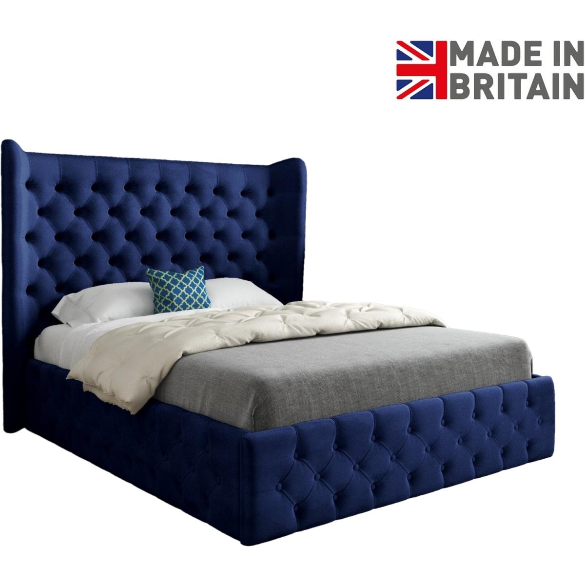 Florence Wide Winged Upholstered Soft Velvet Bed Frame - Blue / King
