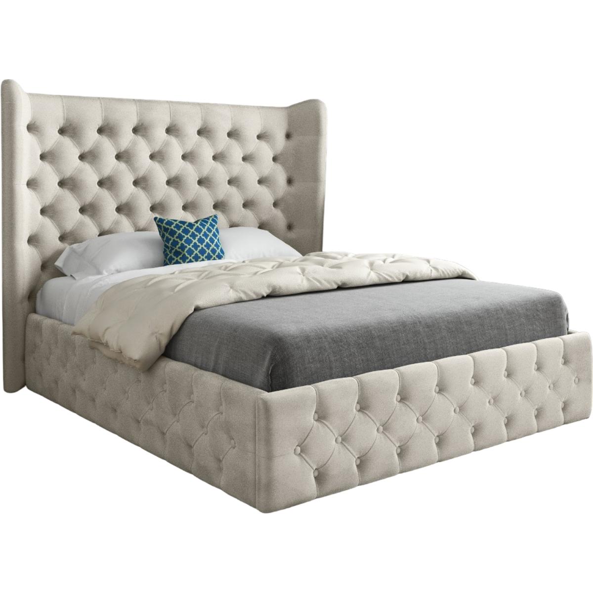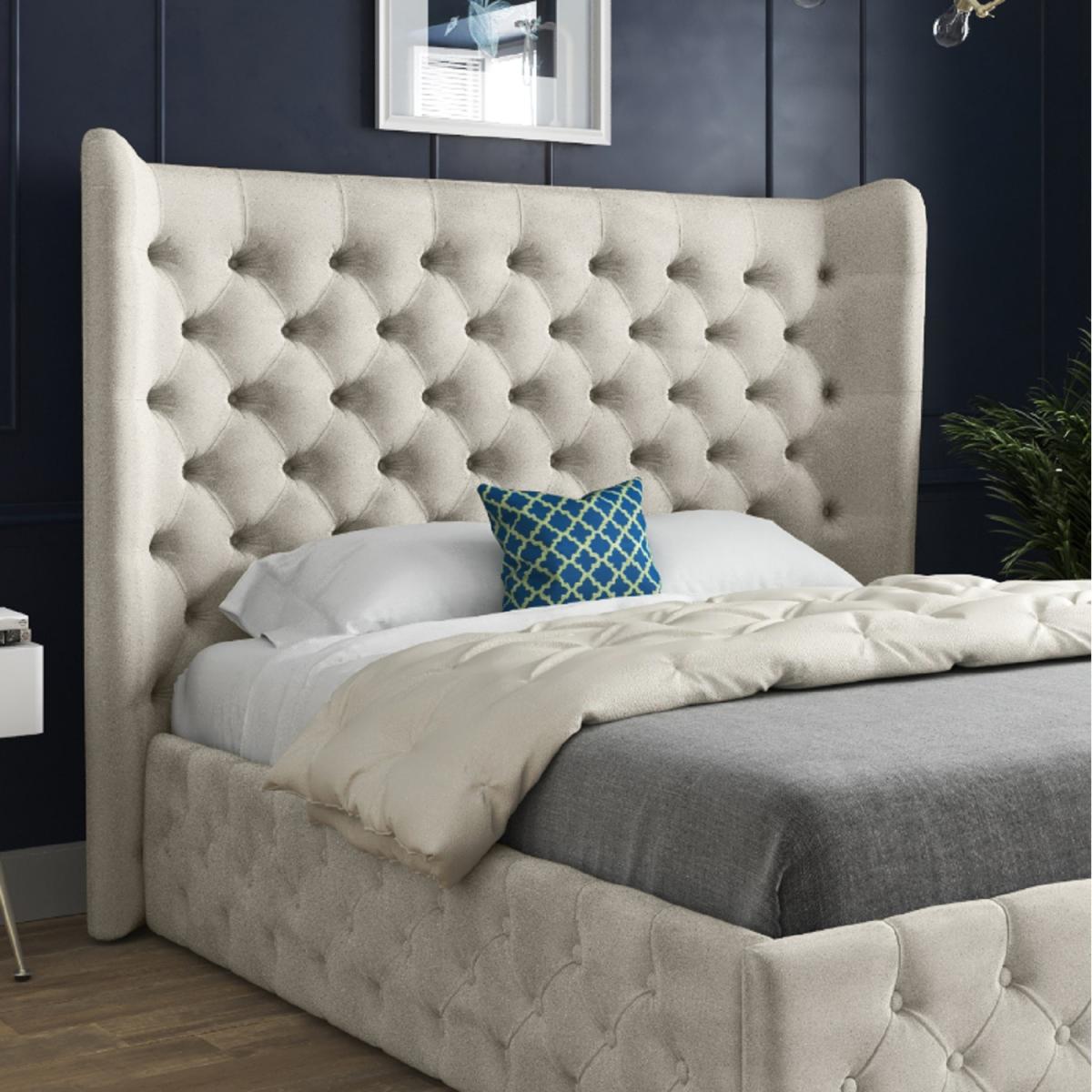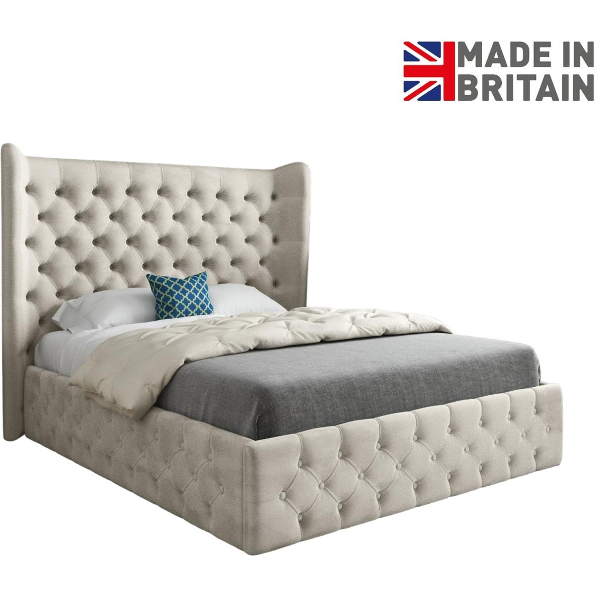 Florence Wide Winged Upholstered Soft Velvet Bed Frame - Cream / Superking