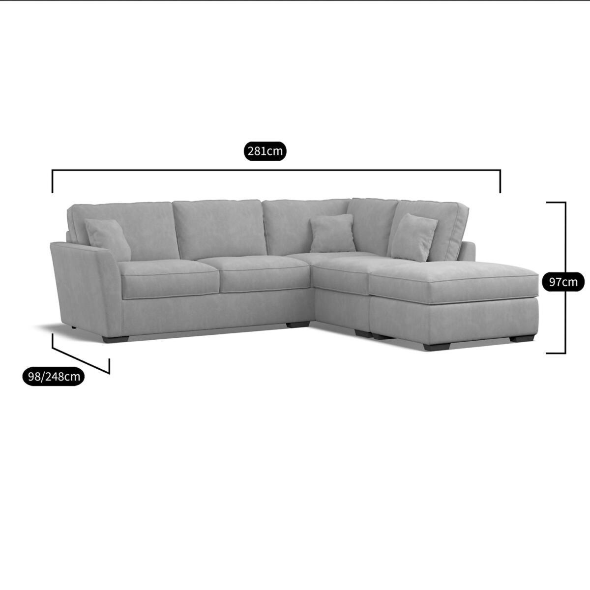 Lean back and relax….the Florence is the ultimate deep sofa with the softest high back and the plumpest of cushions. Take a moment to appreciate the elegant shape and dive right in. Choose from our soft brushed fabric for ultimate coziness, or woven for a textured look. With matching scatter cushions for extra comfort and style. All made to order sofas are carefully manufactured in the UK.Each hardwood frame is dowelled, glued, and screwed before being paired with the finest fabrics and fillings. And it doesn't stop there - for customer peace of mind and safety, all frames and fabrics are rigorously examined, inspected, and tested to the highest standards. Product Specifications:. Product Dimensions: L248cmxW281cmxH9. 7cm. Fabric: Woven - 100% Polyester. Feet: Dark Wood. Scatter Cushions: 3 Fibre filled Scatter Cushions included in matching fabric. Extraflex high comfort seat cushions - A high density foam base seat interior with a hand-rolled carded fibre, channelled topper which provides both softness and support. Superloop back springs. Serpentine seat springs & silent wire. Care Guide :Extraflex seat cushions should be plumped up on a regular basis to help maintain the aesthetical appeal of your upholstery, the plumping of cushions is essential to help retain the comfort and softness of any piece of upholstered furniture. To improve the longevity of your hand-made furniture, we recommend rotating cushions (where applicable).For further information on maintaining your furniture please refer to the care guide located under the seat platform. Packaged Dimensions:Parcel 1:158cmx100cmx99cm, Parcel 2: 180cmx100cmx99cm, Parcel 3: 100cmx72cmx58cm - Please remember to measure your available space before ordering. The Maya Range is also available in Woven & Soft Brushed in a variety of colours. This product will be dispatched by one of our trusted suppliers. You’ll be contacted by their selected courier about your delivery. Your product will be delivered to your room of Choice. All multi part items and feet will be assembled once delivered.