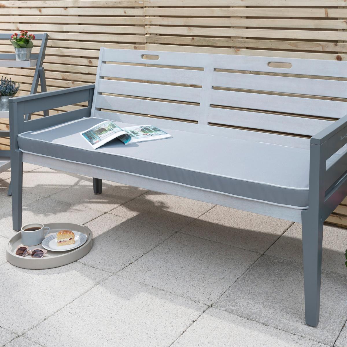 Unwind in your garden with the Florenity Grigio 3 Seater Bench with Seat Pad. This classic wooden bench is beautifully crafted from hard-wearing eucalyptus wood and boasts a smart grey painted finish. It comes complete with a comfy padded, trimmed cushion. Please note, unfortunately we cannot deliver this item to the Channel Islands.