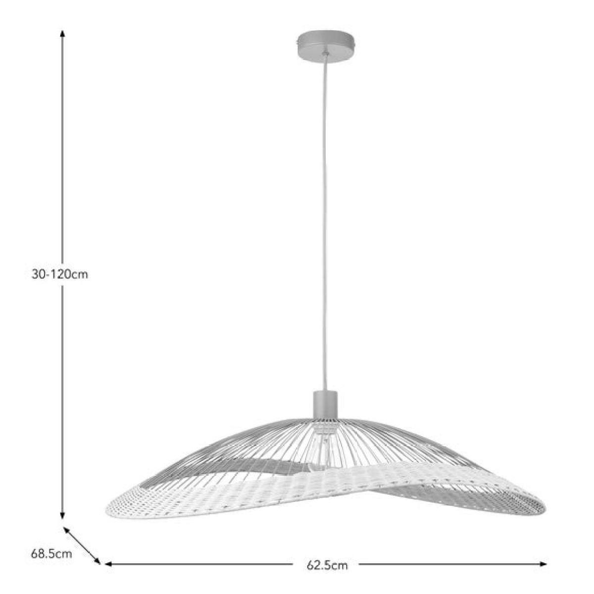 * Adjustable height * Dimmable * Oversized statement style Make a statement with the Florento Pendant Ceiling Light, designed to bring bold style to any room. Featuring an oversized rattan and metal wire shade, it blends natural texture with a modern twist. Compatible with E27 lamps and dimmable when used with suitable bulbs, you can set the perfect mood in seconds. The adjustable height lets you tailor the drop to suit your space, ideal over dining tables, kitchen islands or living areas. With its airy design and standout silhouette, this pendant light adds warmth and impact in one. A striking centrepiece that’s as functional as it is stylish.
