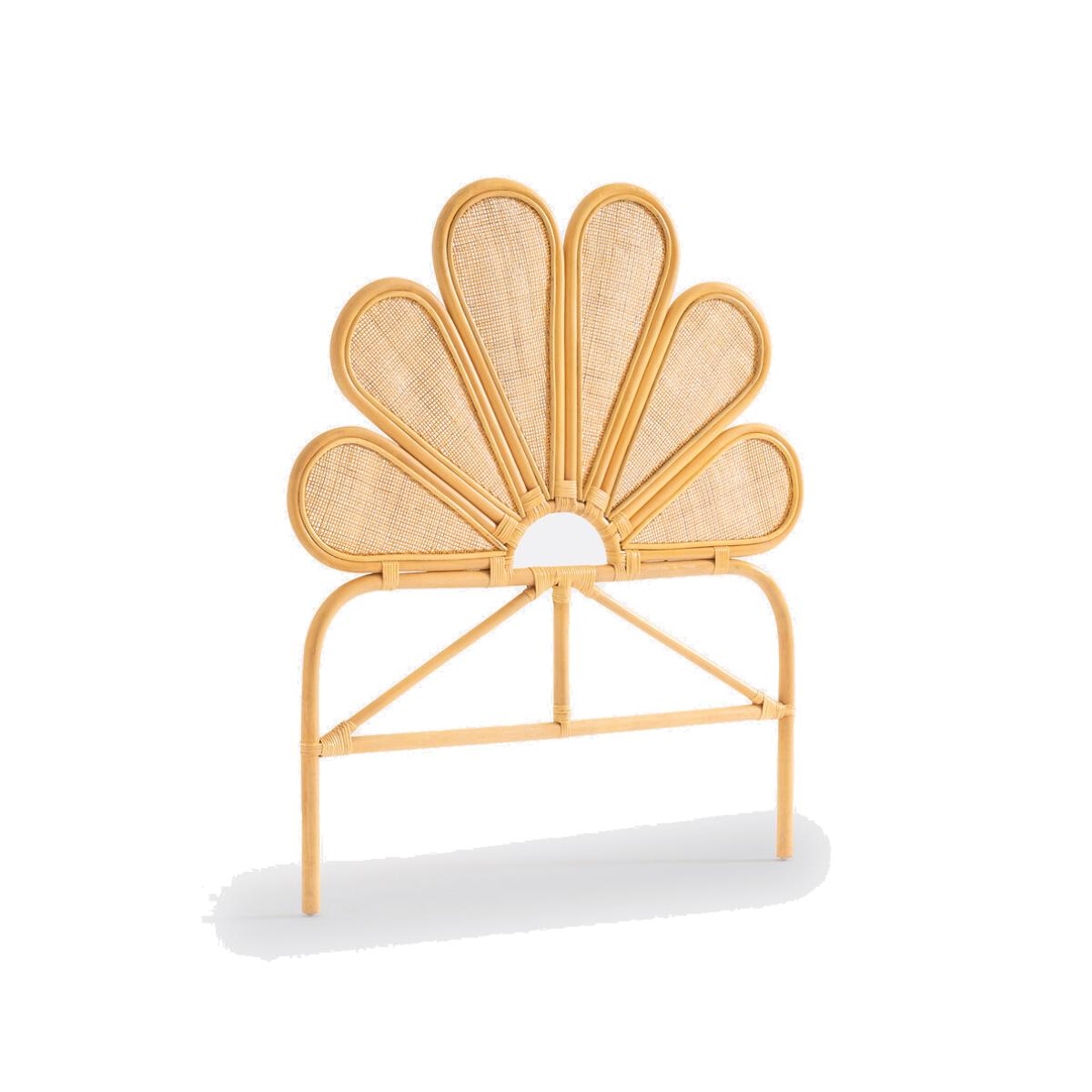 An invitation to travel. Handcrafted, the Flores rattan headboard dresses your child's bed by giving it a little bohemian touch... They won't be in a hurry to get up. Product Details • Rattan cane frame • Interior of 6 woven rattan petals • Nitrocellulose varnish finish • Artisanal craftsmanship. Dimensions • Width : 105cm • Height: 121cm • Thickness: 3cm • Weight: 3.2kgDelivery:. Sold pre-assembled. Parcel dimensions and weight1 parcel • L107 x H123 x D5cm. 6kg