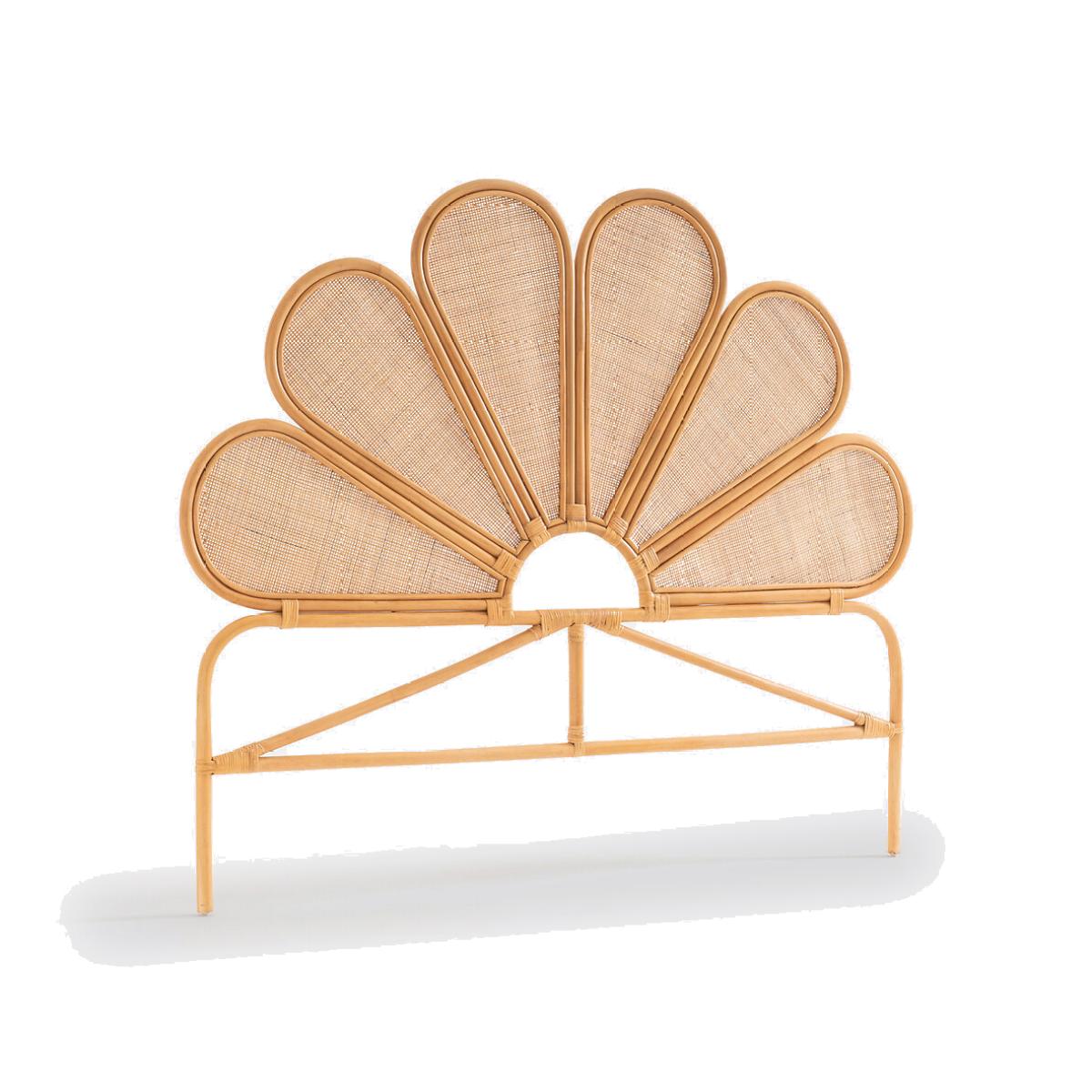 An invitation to travel. Handcrafted, the Flores rattan headboard dresses your bed by giving it a little bohemian side. You won't be in a hurry to get up. Product Details • Rattan cane frame • Interior of 6 woven rattan petals • Nitrocellulose varnish finish • Artisanal craftsmanship. Dimensions • Width : 170cm • Height: 140cm • Thickness: 3cm • Weight: 6kgDelivery:. Sold pre-assembled. Parcel dimensions and weight1 parcel • L173 x H143 x D8cm. 10.5kg