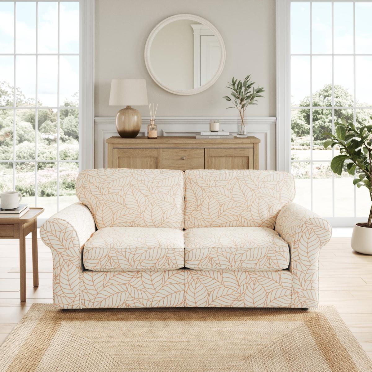 Flori 2 Seater Sofa Bed, Leaf Print Fabric Leaf Butterscoth