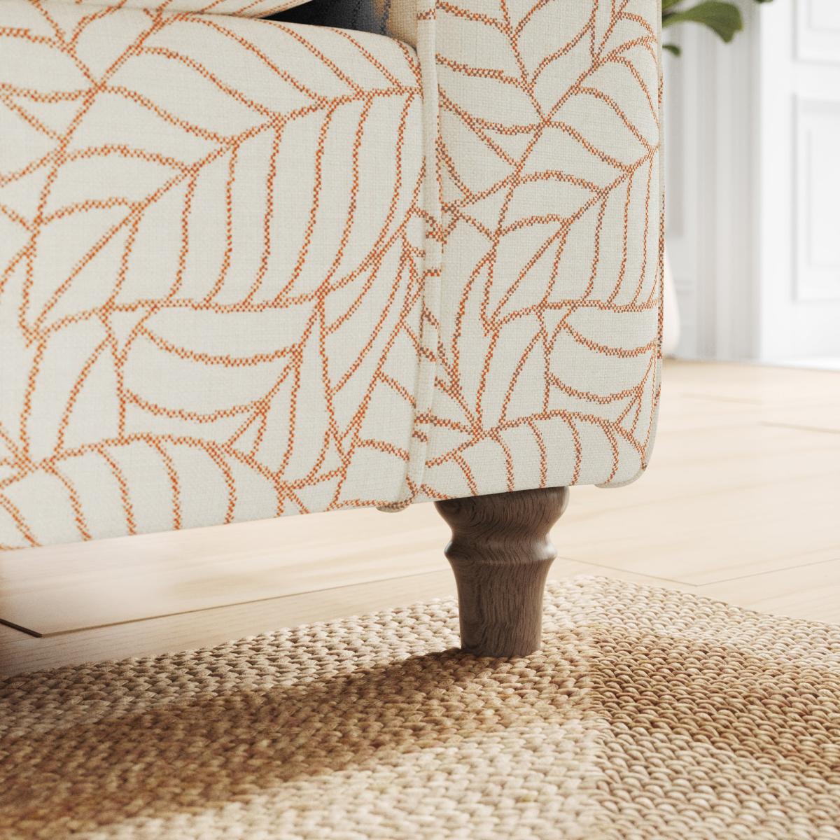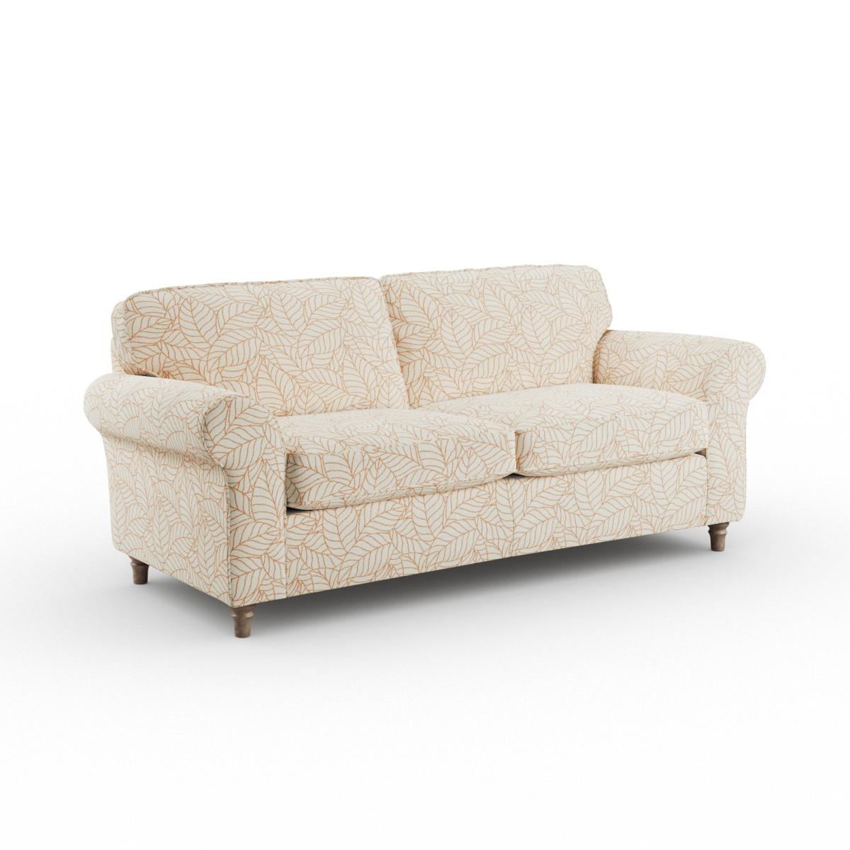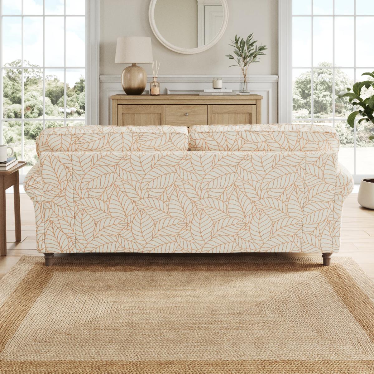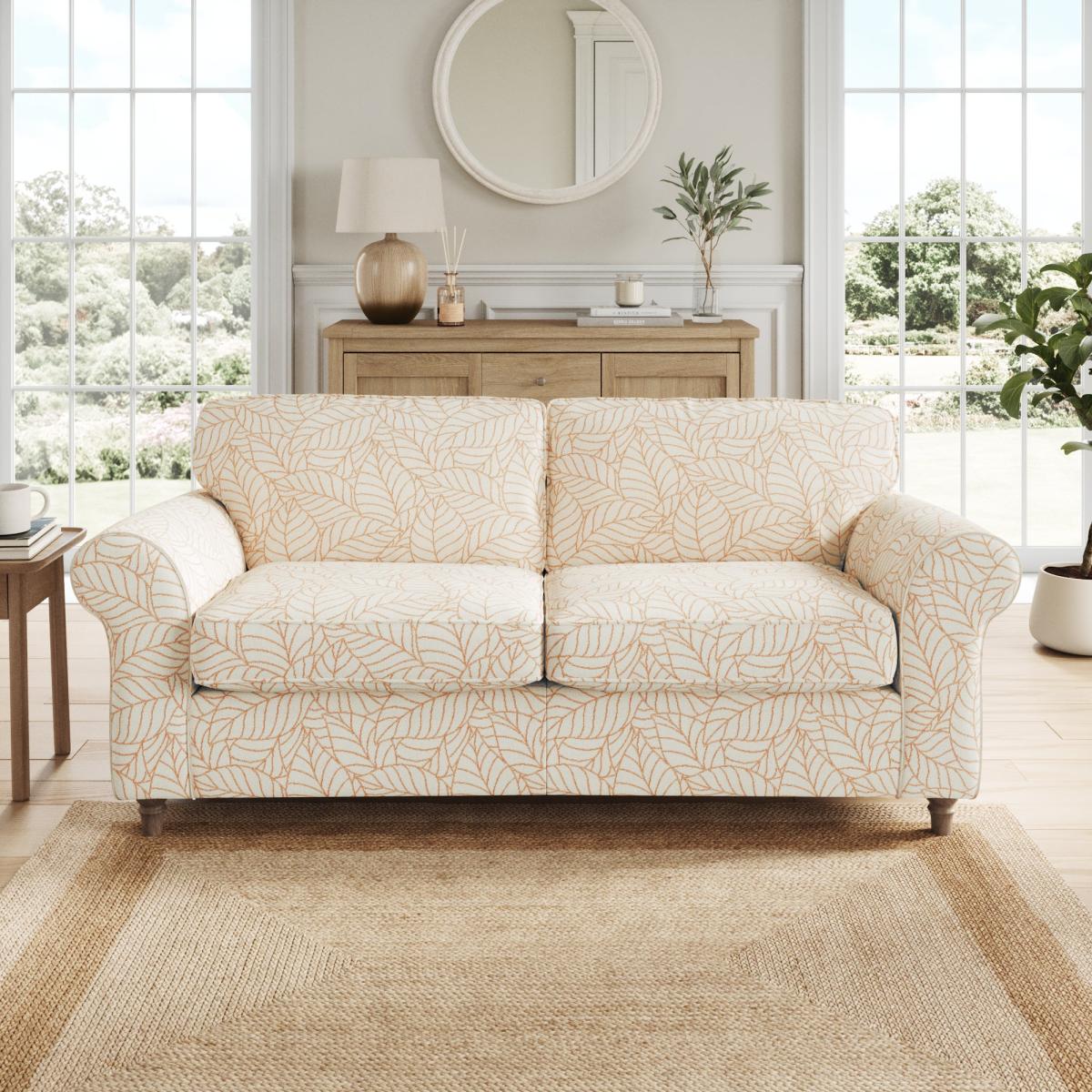 * Classic Shape* Curved arms* Foam and Fibre filled* Turned wooden feet With its smoothly curved arms and sturdy wooden legs, this sofa embodies timeless elegance that effortlessly enhances any living space. Finished with a natural leaf-inspired pattern, the fabric upholstery brings a touch of organic beauty indoors. Enhanced with freshly filled foam cushions, it promises plush comfort and enduring support. This product has fibre filled seat cushions. This means they require vigorous plumped by shaking and redistributing the fibres daily. This will add air back into the fibres and preventing clumping, flattening and the seat dipping.
