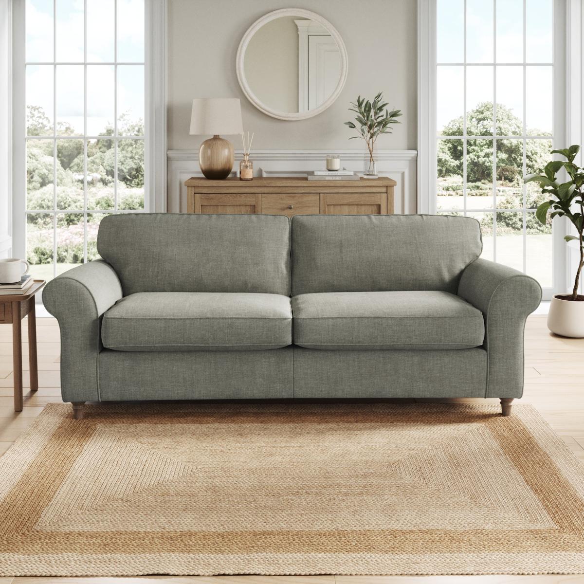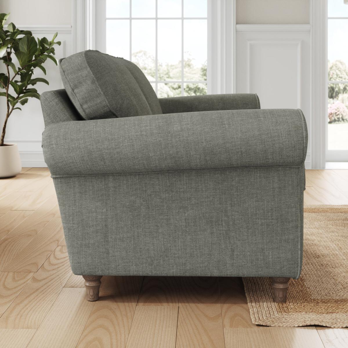 * Classic Shape* Curved arms* Foam and Fibre filled* Turned wooden feet Featuring gracefully scrolled arms and elegantly turned wooden feet, this sofa embodies timeless style that effortlessly enhances any room. Available in a selection of colour palettes, the plush chenille upholstery is complemented by piped edge detailing for a refined finish. Enhanced with brand-new foam seat and back cushions, it ensures both comfort and durability. This product has fibre filled seat cushions. This means they require vigorous plumped by shaking and redistributing the fibres daily. This will add air back into the fibres and preventing clumping, flattening and the seat dipping.