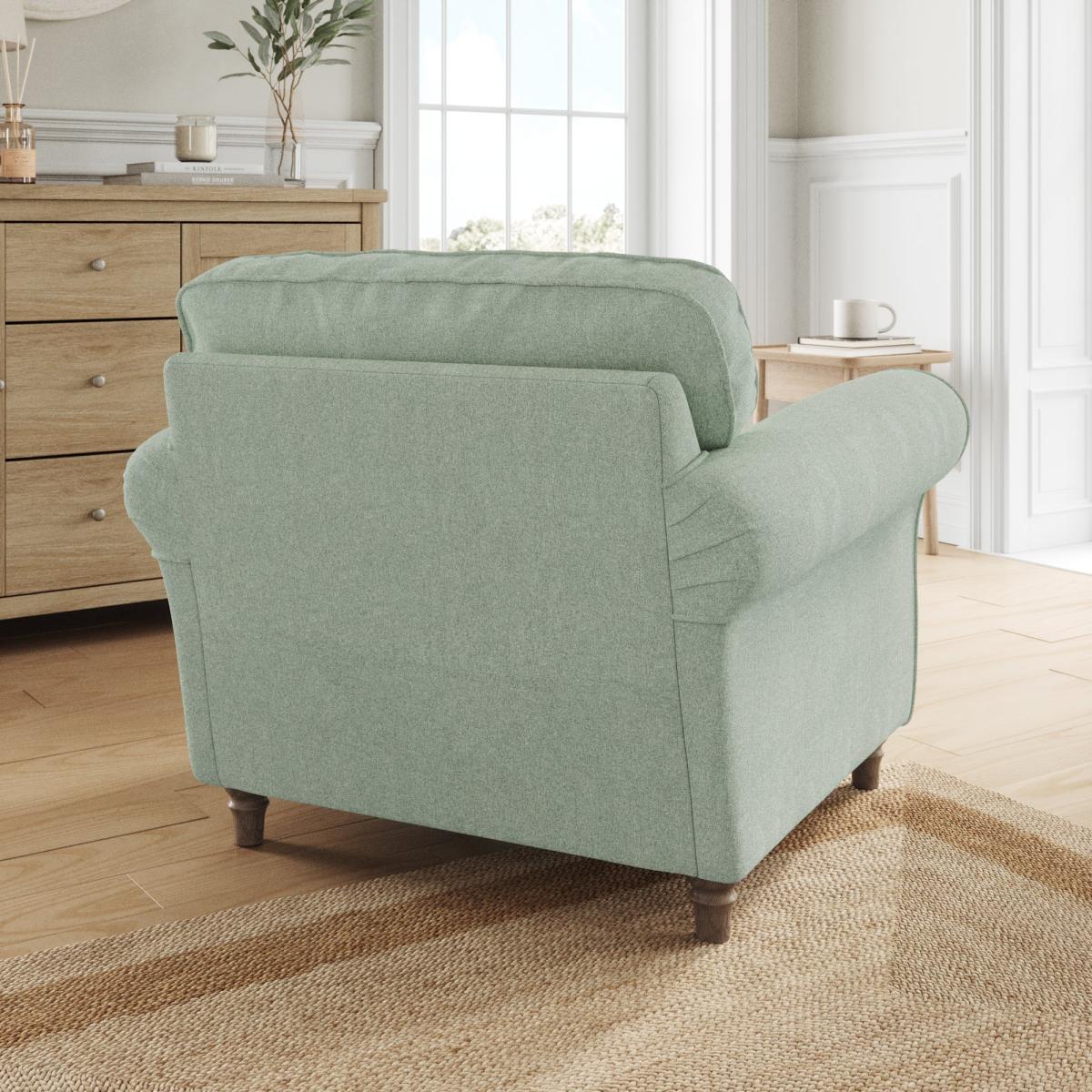 I’m a big fan of this seafoam chenille chair for its soft texture and gentle colour - it lifts a room without overpowering it. It works particularly well in coastal, Scandi or laid-back modern farmhouse schemes, where natural woods and woven rugs can ground its pale green tone. For styling, tuck a tactile throw over one arm and add a neutral cushion for contrast, then position it beside a slim-legged side table and a simple floor lamp to create a relaxed reading corner. Its compact size means it can slot easily into a snug or at the end of a bed.