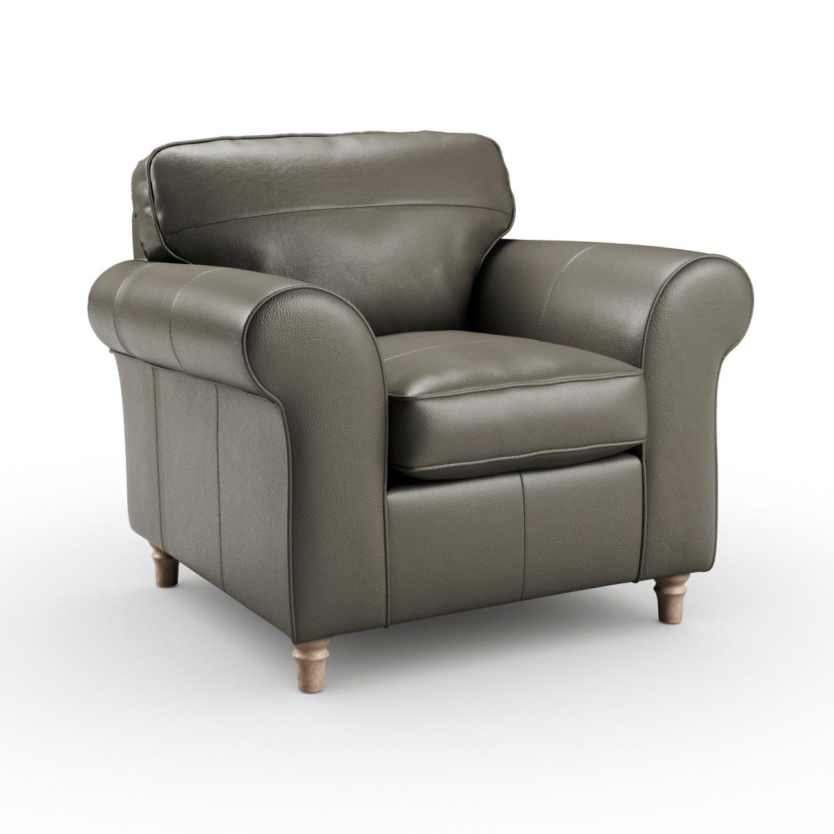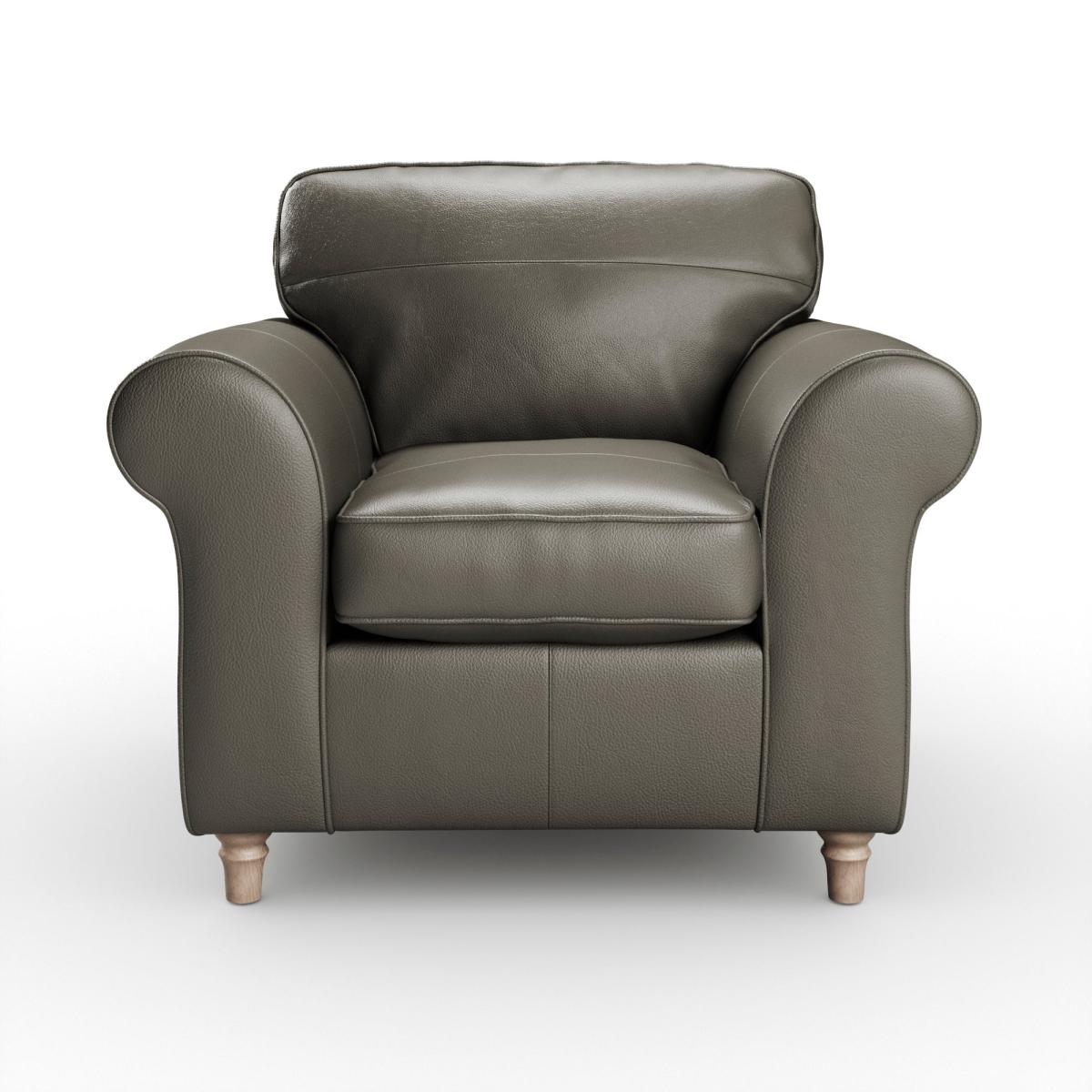 * Classic Shape * Curved arms * Foam and Fibre filled * Turned wooden feet This armchair is designed to provide a luxurious seating experience. Its plush cushions and sleek leather upholstery create a refined, inviting space to relax. Built with high-quality materials, this armchair offers lasting durability and timeless elegance, making it a perfect accent piece for any room.