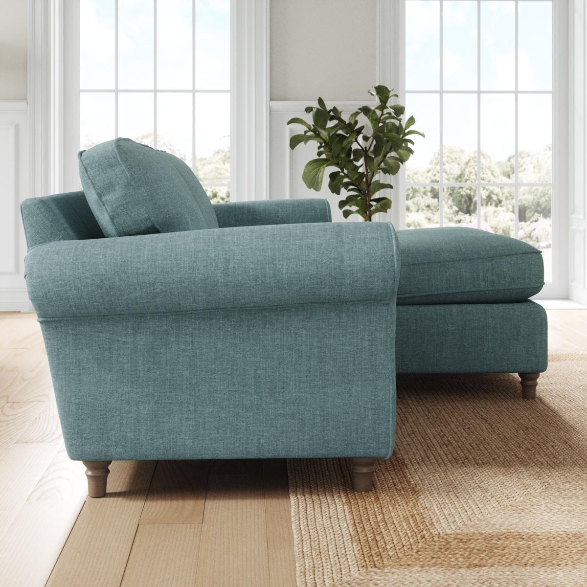 Flori Corner Chaise Sofa, Tonal Plush Chenille Aqua