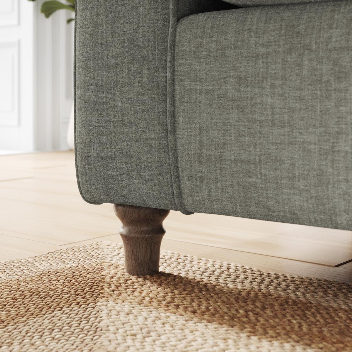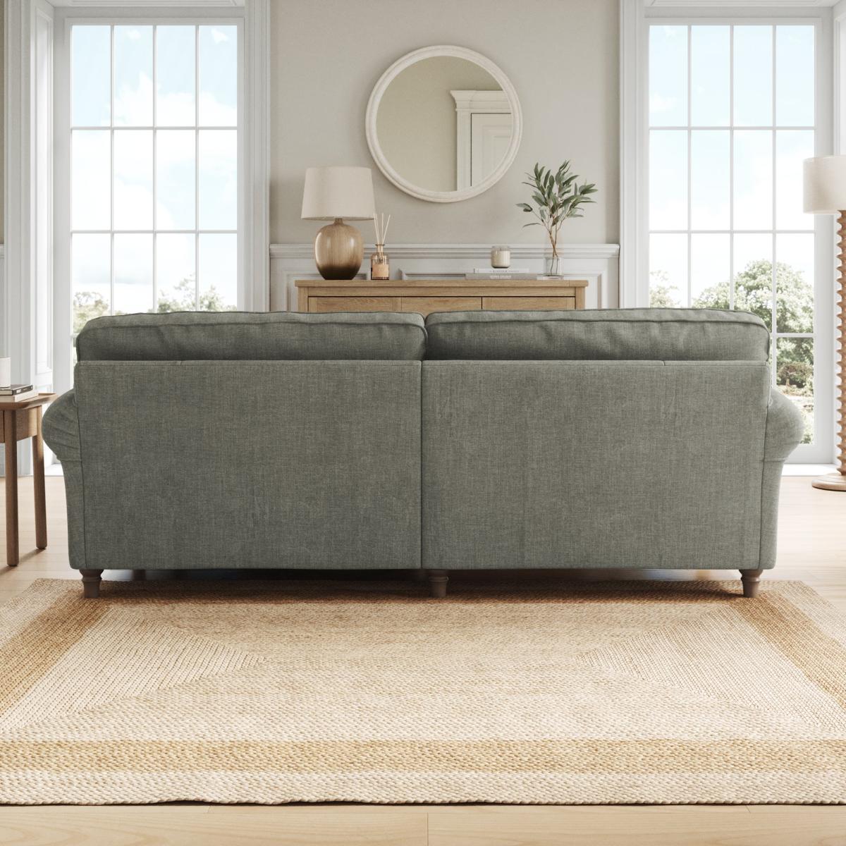 * Classic Shape* Curved arms* Foam and Fibre filled* Turned wooden feet With gracefully scrolled arms and elegantly turned wooden feet, this sofa radiates timeless elegance that effortlessly elevates any room. Available in a selection of colour palettes, the plush chenille upholstery is adorned with piped edge detailing for a touch of refinement. Enhanced with brand-new foam seat and back cushions, it promises luxurious comfort and lasting support. This product has fibre filled seat cushions. This means they require vigorous plumped by shaking and redistributing the fibres daily. This will add air back into the fibres and preventing clumping, flattening and the seat dipping.