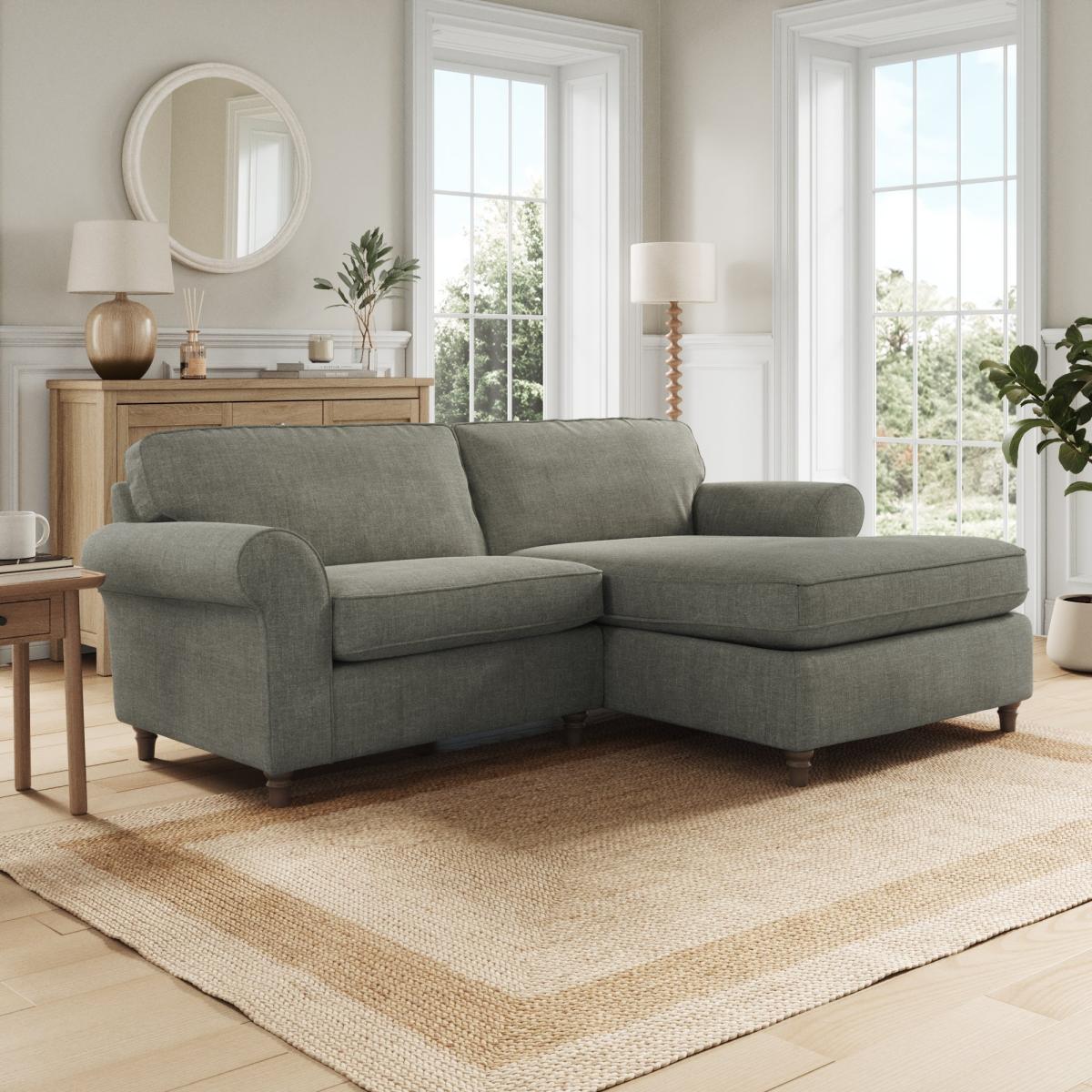 Flori Corner Chaise Sofa, Tonal Plush Chenille Grey