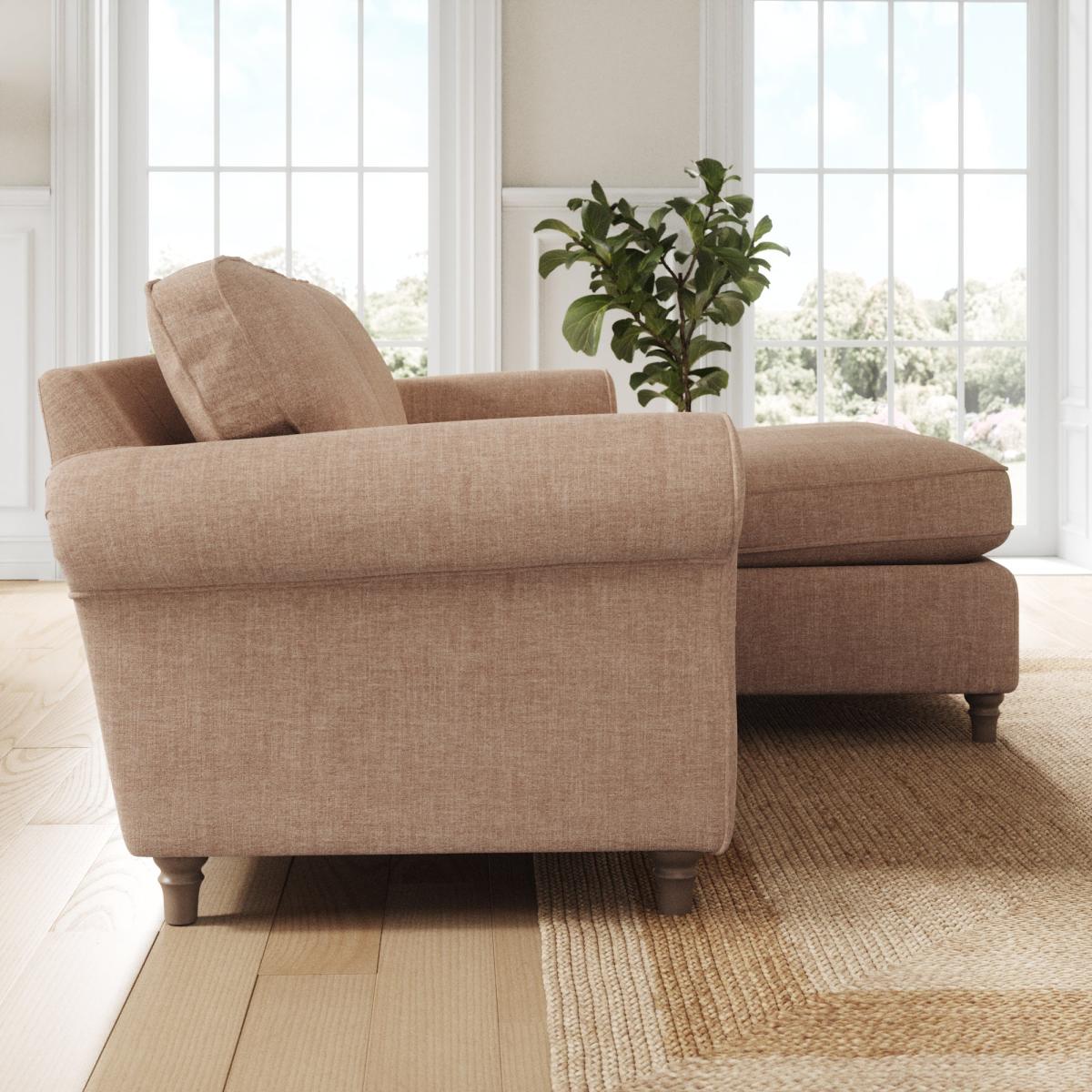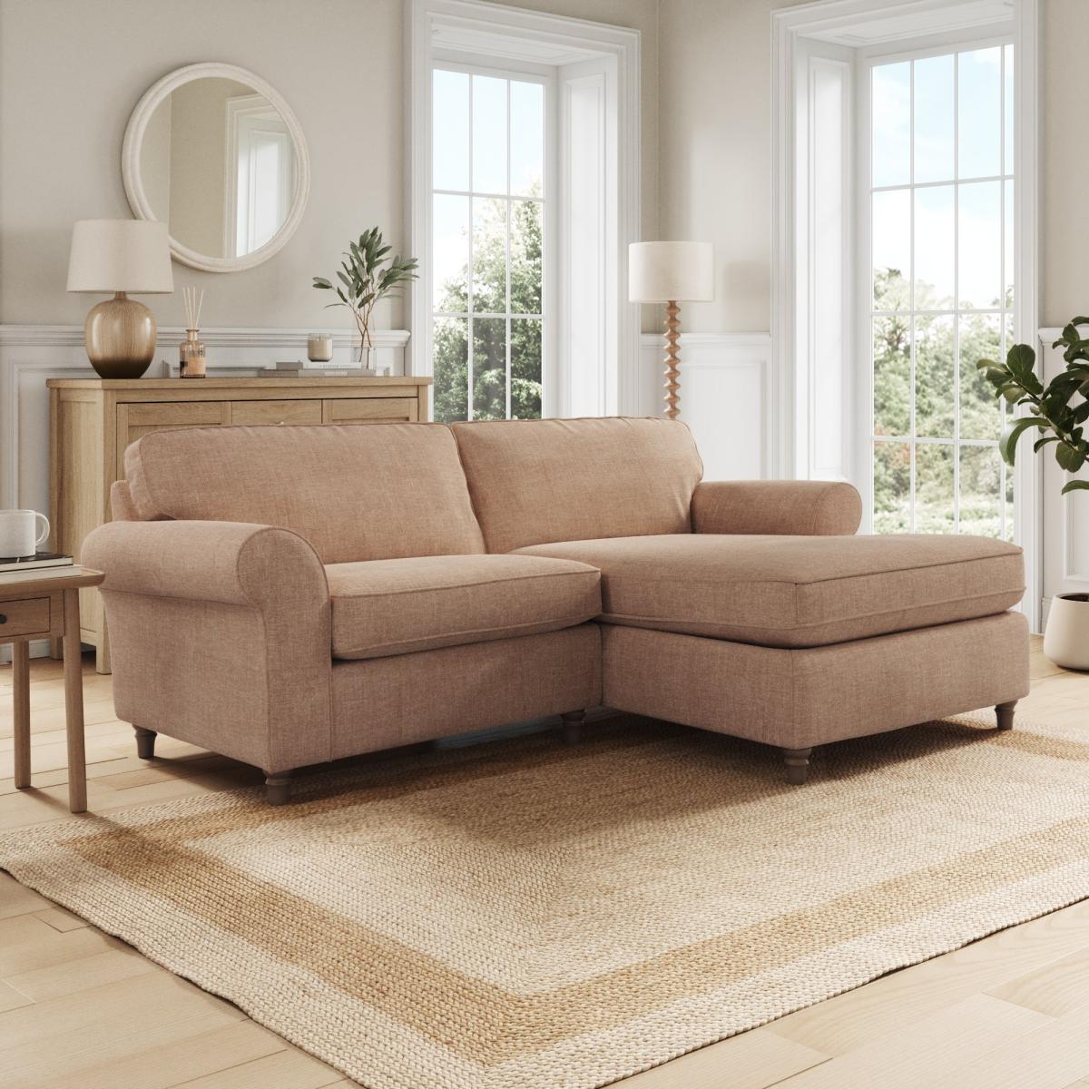 I love this corner sofa for its versatile and welcoming design, making it a great focal point in both contemporary and traditional interiors. The soft clay tone is wonderfully neutral, allowing it to pair effortlessly with various colour schemes - think muted pastels for a gentle feel or bold accents for contrast. Its plush chenille fabric adds a cosy, inviting texture, perfect for relaxing. When styling, consider layering with cushions in contrasting fabrics and patterns to add visual interest. It works particularly well in open-plan living spaces or family rooms, where its shape encourages socialising and comfort. Practical tips include keeping the surrounding decor simple to let the sofa shine, and using a washable cover or throws for easy maintenance in high-traffic areas.