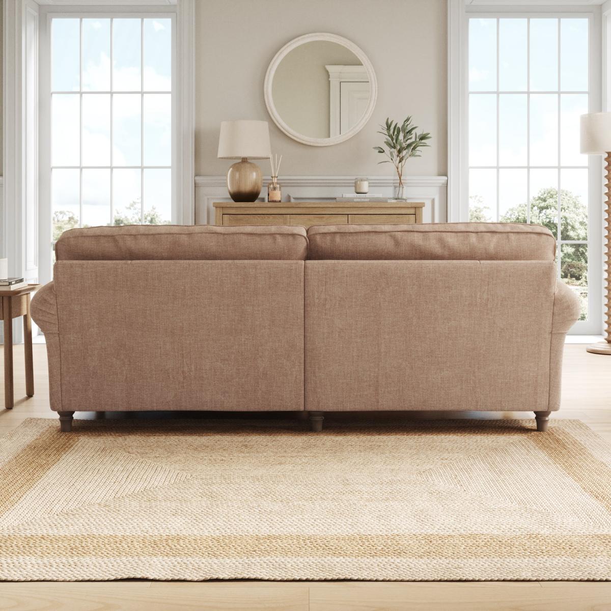 * Classic Shape* Curved arms* Foam and Fibre filled* Turned wooden feet With gracefully scrolled arms and elegantly turned wooden feet, this sofa radiates timeless elegance that effortlessly elevates any room. Available in a selection of colour palettes, the plush chenille upholstery is adorned with piped edge detailing for a touch of refinement. Enhanced with brand-new foam seat and back cushions, it promises luxurious comfort and lasting support. This product has fibre filled seat cushions. This means they require vigorous plumped by shaking and redistributing the fibres daily. This will add air back into the fibres and preventing clumping, flattening and the seat dipping.