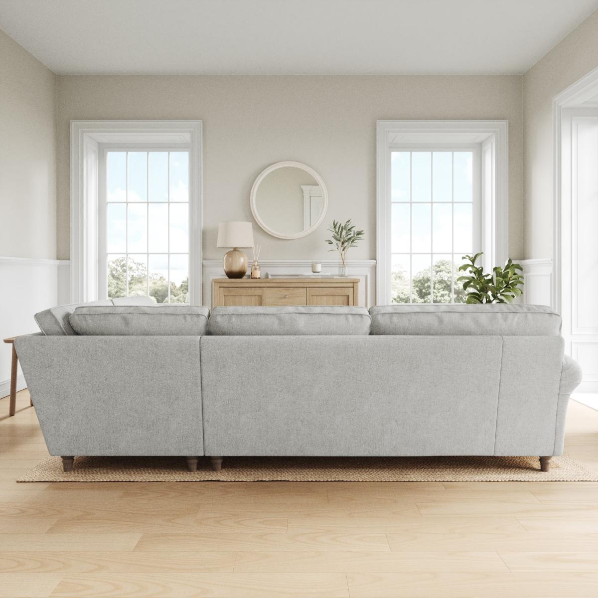 I love this sofa for its versatile, neutral tone and inviting chenille texture, making it a practical choice for a variety of interiors. It works particularly well in contemporary or Scandinavian-style spaces, where its soft grey seamlessly complements light woods and muted colour palettes. Styling tips include accessorising with colourful cushions or throws to add personality, or pairing it with a statement coffee table for a cosy, layered look. Its generous corner design makes it ideal for open-plan living rooms or family spaces where comfort is key, offering plenty of seating without overwhelming the room. Overall, it’s a functional yet stylish piece that effortlessly blends comfort with understated elegance.