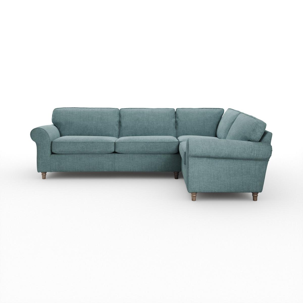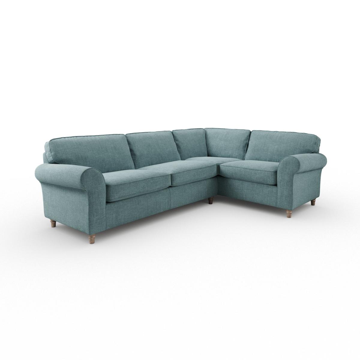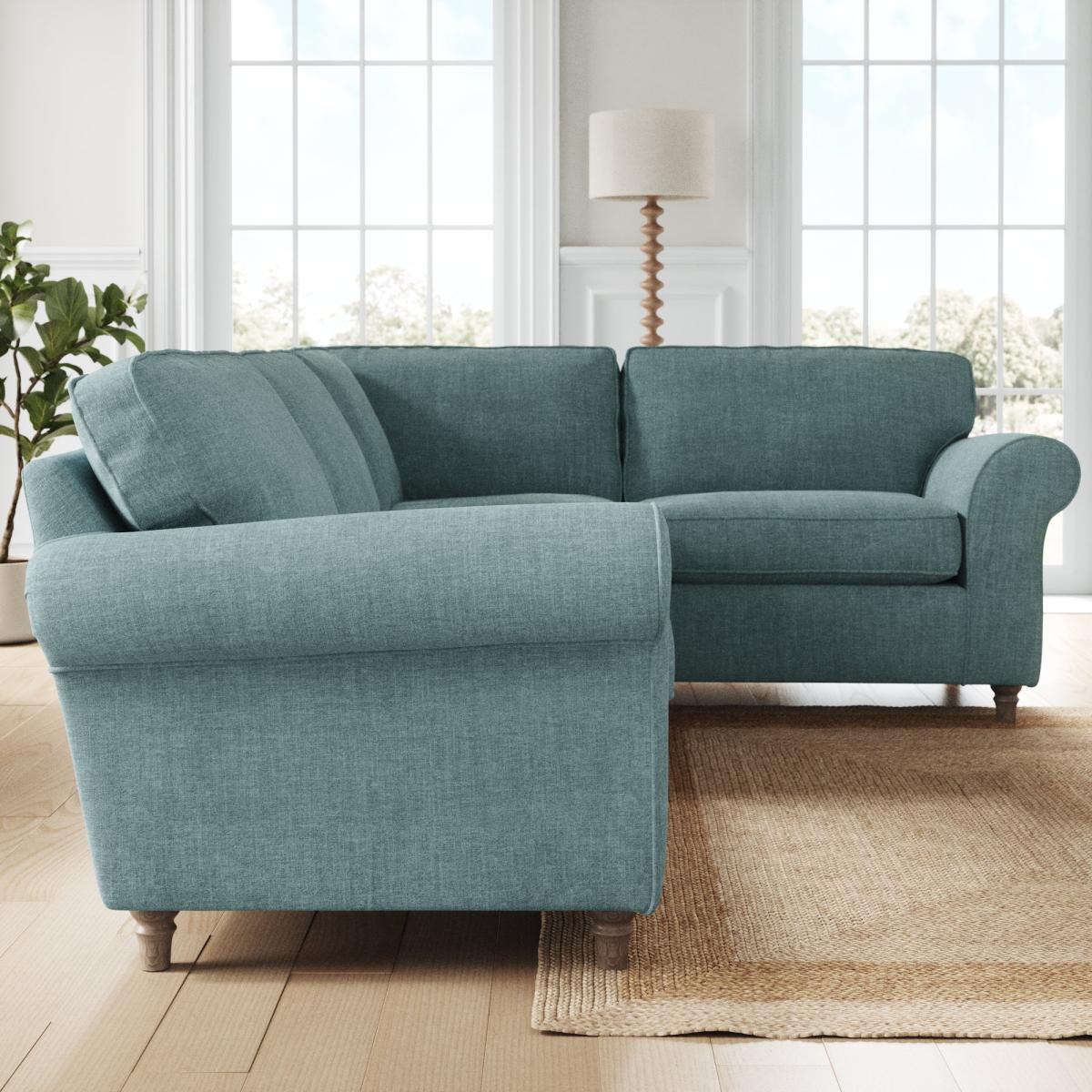 Flori Corner Sofa, Tonal Plush Chenille Aqua