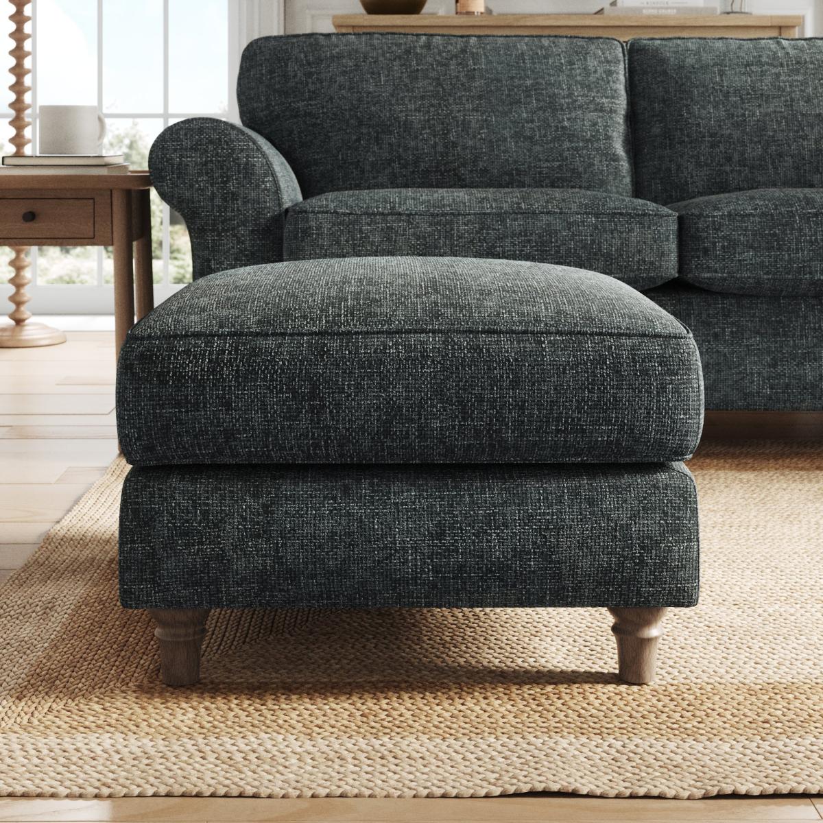 * Classic Shape* Foam and Fibre filled* Turned wooden feet With its sturdy wooden feet and understated elegance, this footstool adds a touch of timeless sophistication to any living space. Available in a variety of rich tones, the chunky chenille upholstery is complemented by tasteful piping detail, enhancing its refined appearance. Enhanced with newly filled foam cushioning, it ensures exceptional comfort and durability. This product has fibre filled seat cushions. This means they require vigorous plumped by shaking and redistributing the fibres daily. This will add air back into the fibres and preventing clumping, flattening and the seat dipping.