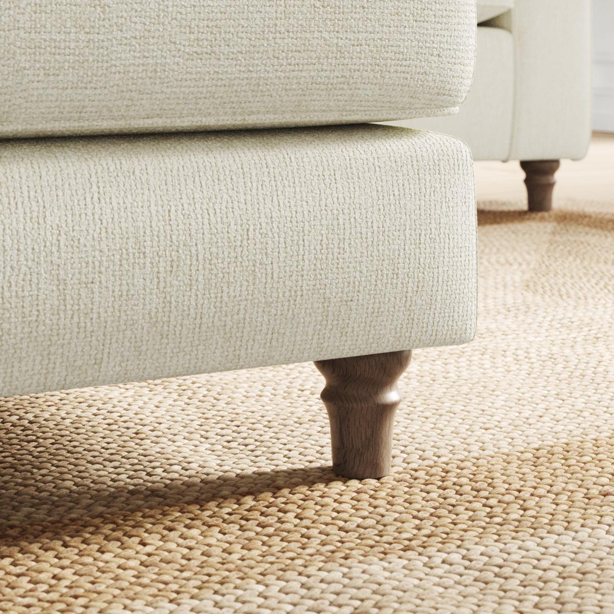 I really like this chunky chenille footstool for its tactile texture and soft, neutral tone - it brings warmth without overwhelming a scheme. It sits equally well in Scandi-inspired living rooms, coastal retreats or muted, transitional interiors. For styling, use it as extra seating or pop a low tray on top to create a casual coffee-table spot. Layer it on a natural-fibre rug and pair with a comfy armchair or sofa in muted greys, blues or earthy greens. Its sturdy wooden legs also make it a practical choice in family rooms, where a bit of extra height and surface area is always useful.