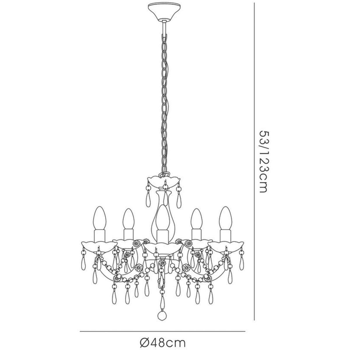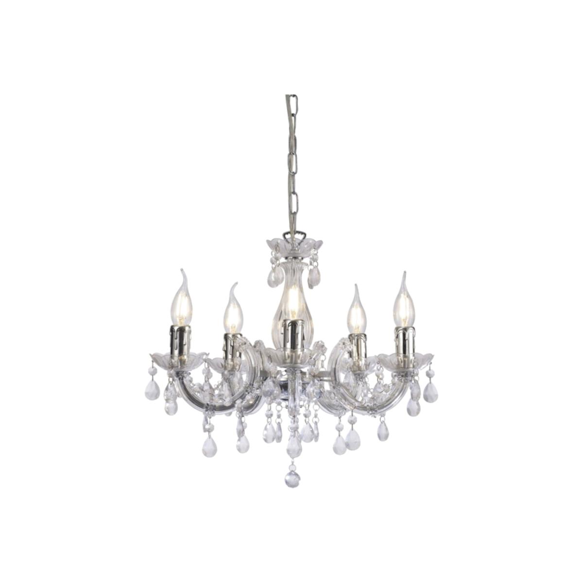 This is a traditional yet contemporary range of chandeliers available in three sizes a 3 light, 5 light and a two tiered 6 3 light. These fixtures combines a metal framework with a decorative acrylic overlay, multiple acrylic strands and sconces and an intricate centre column feature that makes this range truly eye catching. Each lampholder takes E14 lamps, and the light fittings are available in a polished chrome finish.