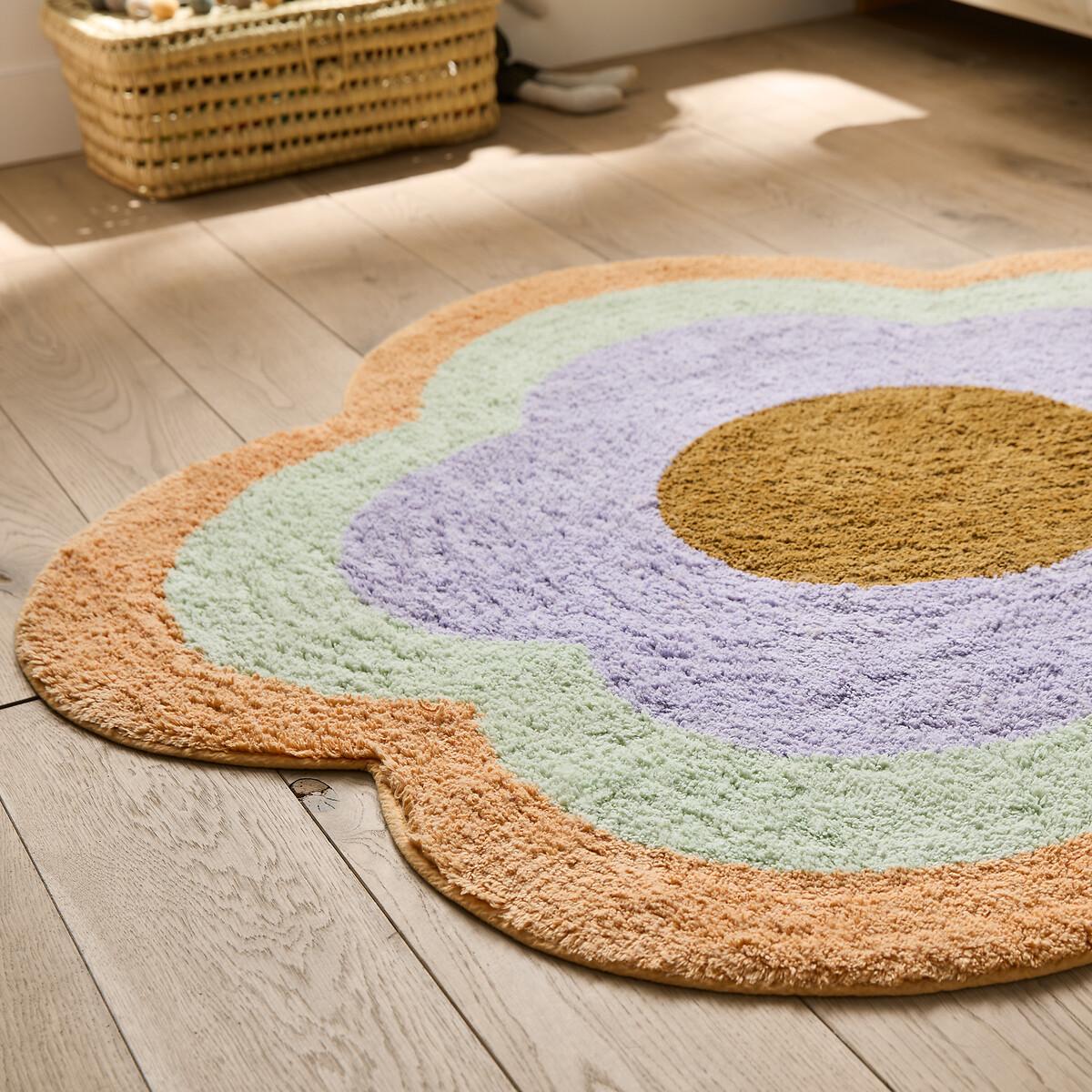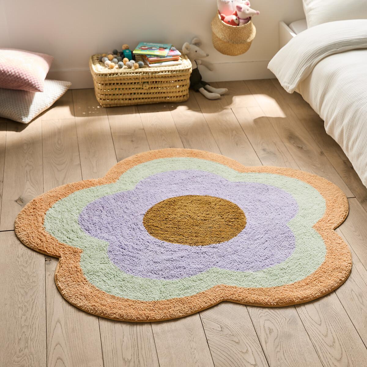 Floria, the 100% kid-friendly rug. So kitsch with its flower shape and peppy colours, Floria is handmade from very soft and comfortable recycled cotton. The perfect rug for a child's room. Designed by La Redoute Interiors. Product Details • 100% cotton • Recycled cotton • 1700g/m2 • Thickness: 1cm • Weaving type: Handmade • Underfloor heating compatible: Yes • Interior Use:Yes • For outdoor use: No • Artisanal craftsmanship. Quality Info • Cotton is soft to the touch and fluffy. This cotton rug is a good heat and sound insulator. • Hand-braided, each piece is unique and may have small irregularities which make it authentic.. Colours and dimensions may vary slightly. Care Advice • Machine washable at 30°CSize • Diameter: 120cmDelivery:. This product will be delivered to your home. • OEKO-TEX® Standard 100. Standard 100 certification by OEKO-TEX® tests textile products for harmful substances via an independent, international label.