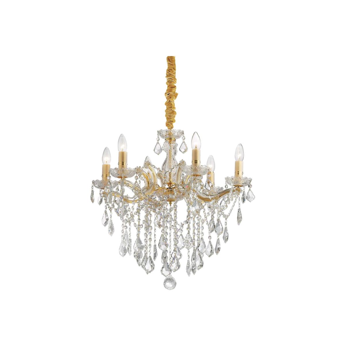 Florian 6 Light Crystal Chandelier Gold Finish, E14 - Gold