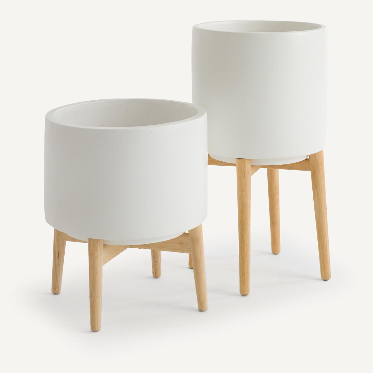 I love this pot for its clean, minimalist design, combining natural wood legs with a sleek ceramic finish. It’s a versatile piece that works well in both modern and Scandinavian-inspired interiors, adding a touch of understated sophistication to any space. Perfect for small to medium indoor plants like succulents, ferns, or peace lilies, it’s practical for creating a centrepiece or an understated accent on windowsills, sideboards, or shelves. For styling, consider grouping it with other natural textures or different sizes of similar planters to create visual interest. Its neutral tone makes it easy to incorporate into various colour palettes, while the elevated base adds a subtle lift that helps to frame your plants beautifully.