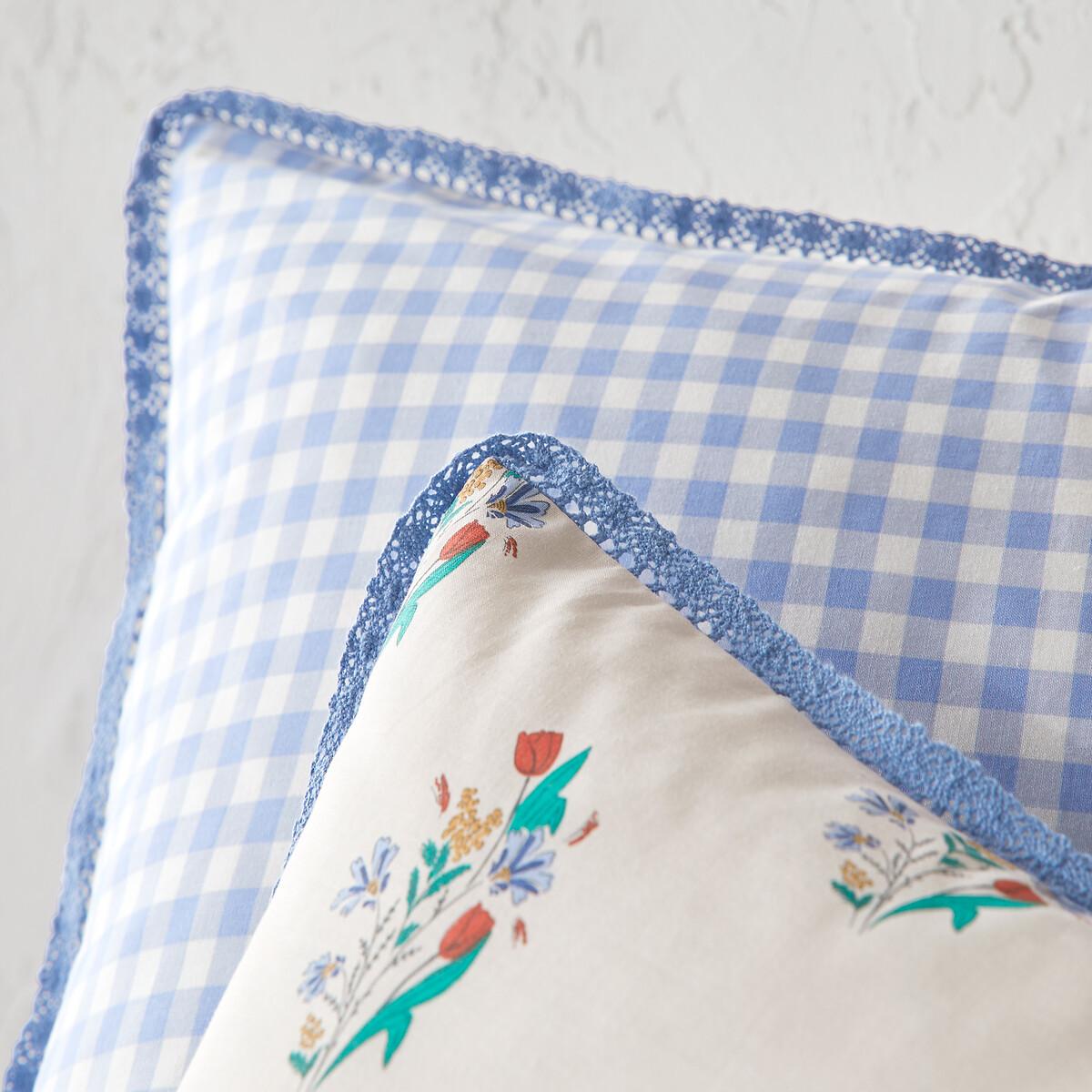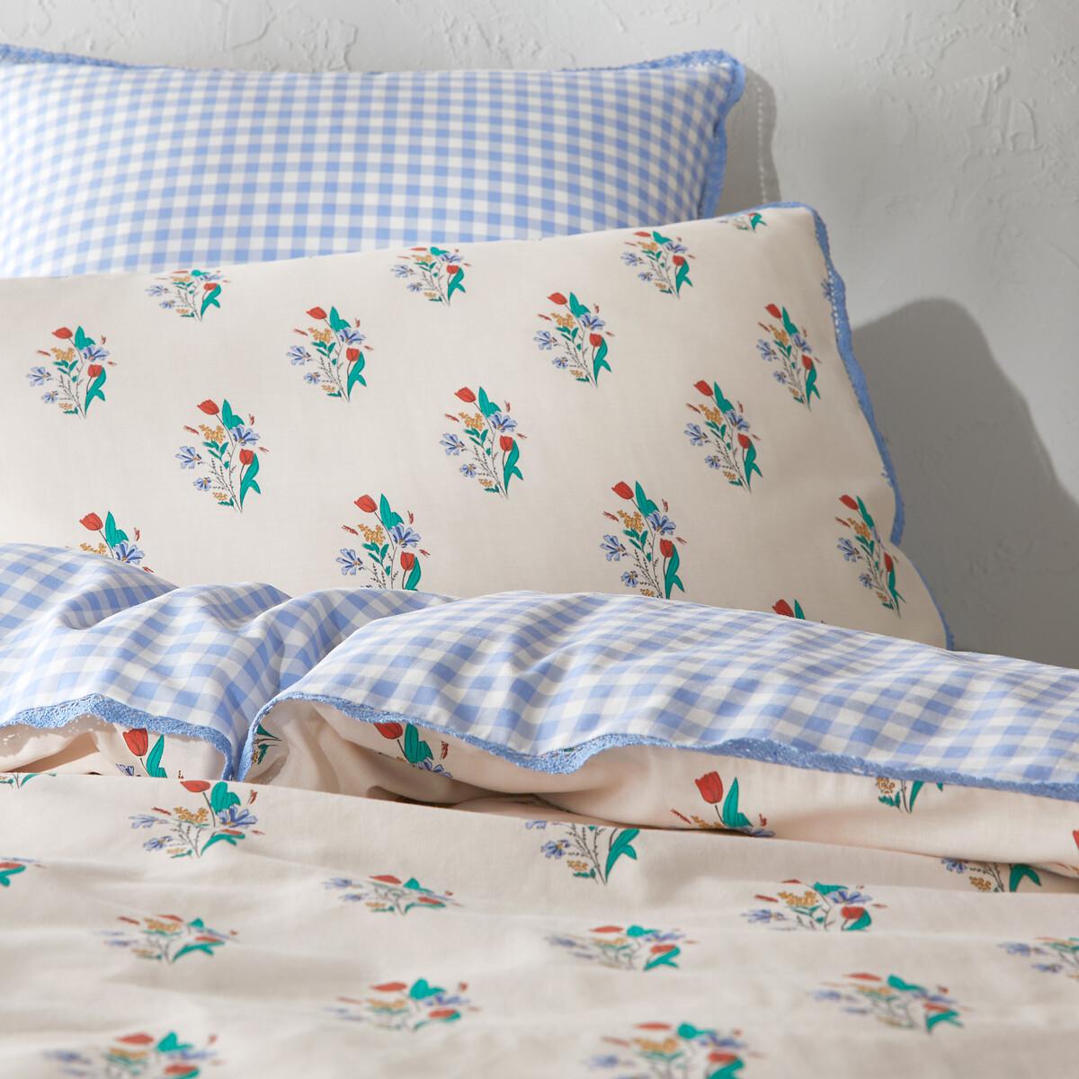 Introducing Floriane. 100% cotton bed linen that combines checks and bouquets of flowers in a country spirit. It promises a room filled with freshness. Designed by La Redoute Interiors. Cotton is part of our daily lives. We love it for its suppleness and softness. Easy Care, it is ideal for the beds of young and old alike!Product Details • 100% cotton • Contains 20% recycled cotton • 144 thread count • One side floral print, one side check print • Croquet ribbon trim • Straight buttoned hem Match this item with the rest of the bedding in the range for a stylish bedroom. And you can mix and match it with different colours and styles from our other bedding ranges when you want to change things up and create your own unique look.. Care Advice • Machine washable at 60°C • By washing your laundry at 40°C instead of 60°C, you limit energy consumption. Dimensions • 140 x 150cm: Adjustable bed • 140 x 200cm: Single • 200 x 200cm: Double • Recycled cotton. Using recycled cotton is all about conserving resources and reducing waste.
