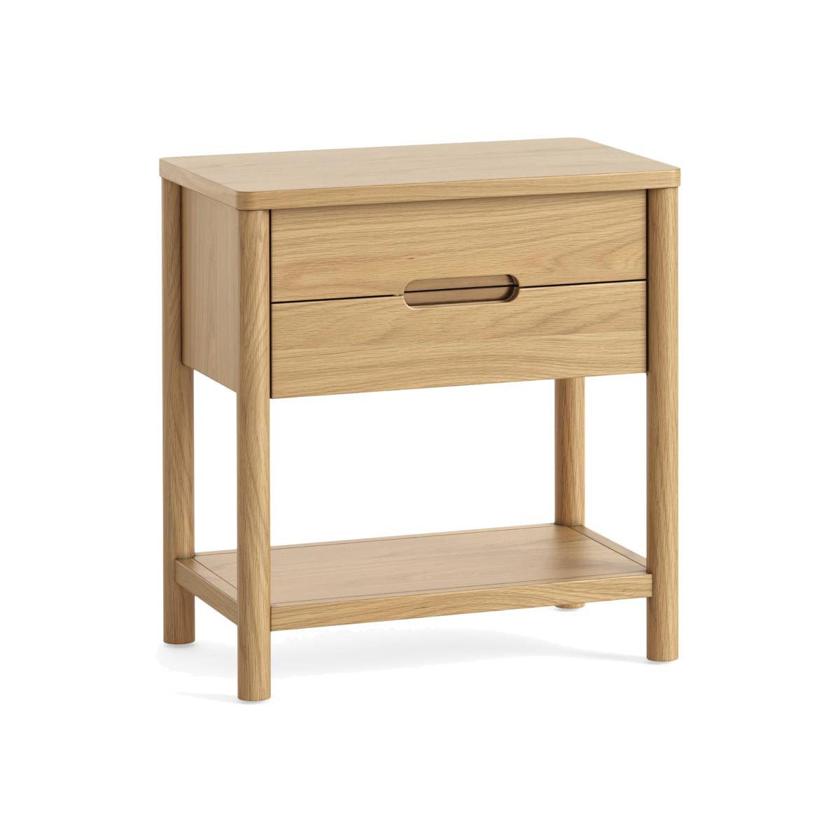 * Oak frame * Side wooden runners * Ready assembled This bedside table features a clean, modern design with a single spacious drawer, providing convenient storage for your nighttime essentials such as books, glasses, or a lamp. The sleek finish and simple lines make it a versatile piece that complements a range of decor styles, from contemporary to classic.