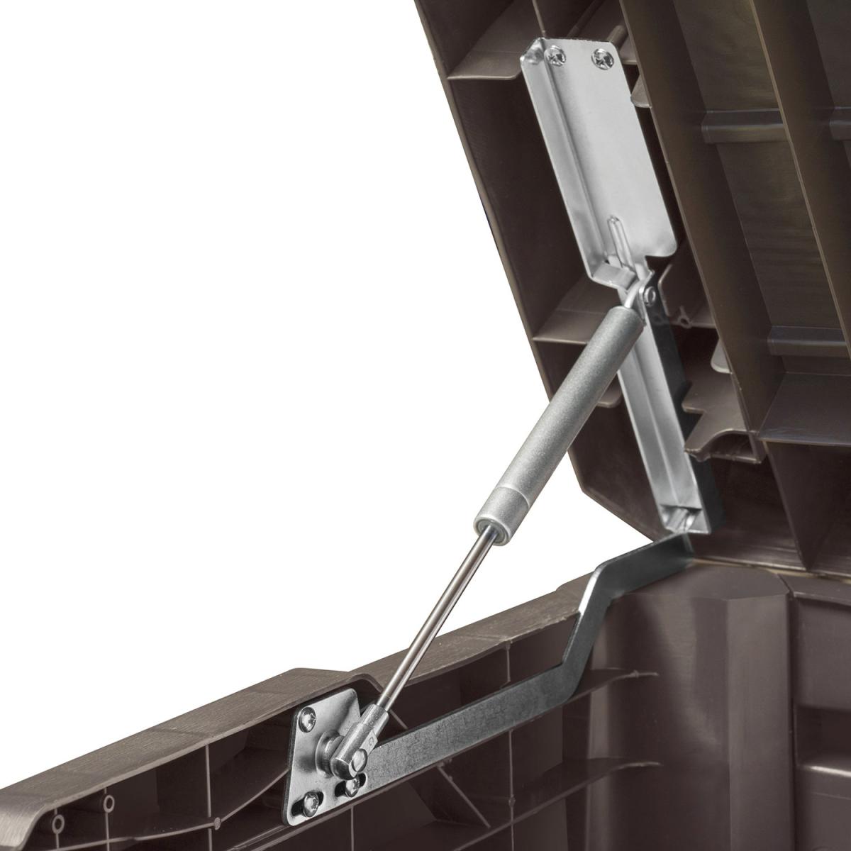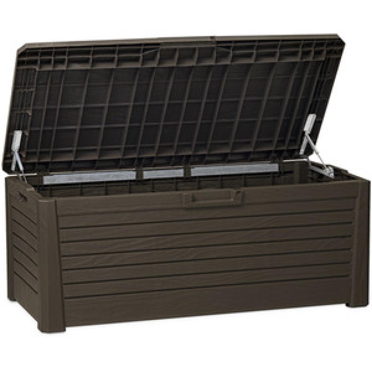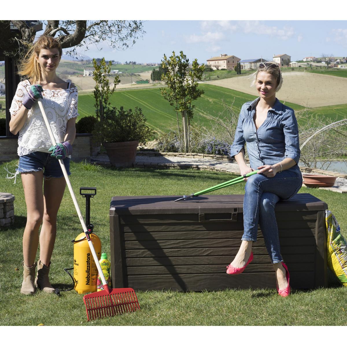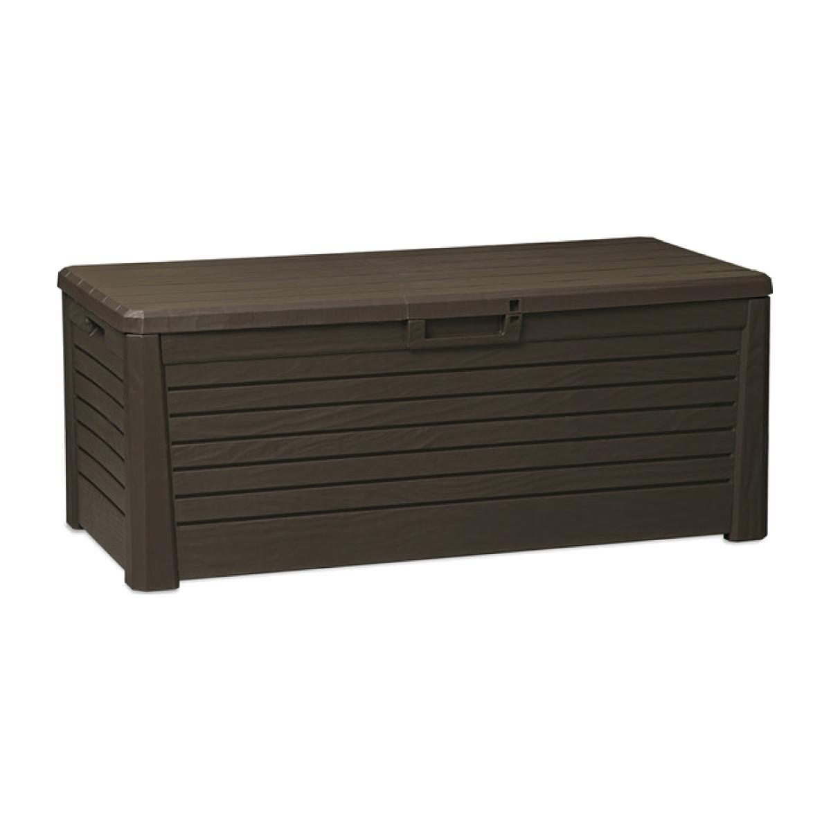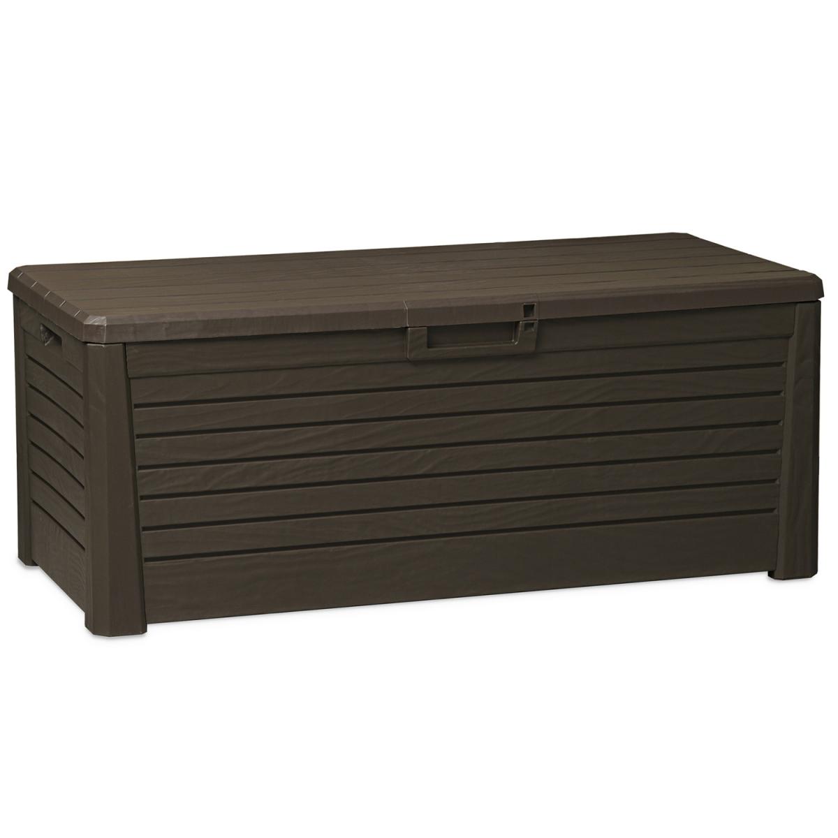 A multi-functioning storage box for your garden, the Florida Cushion Box features a deluxe yet practical design. Made from hard-wearing polypropylene with a flush-fitting lid, this box will remain weather-resistant to keep your possessions dry and safe. Ideal for storing away cushions for your patio furniture, garden tools and toys, this 550-litre capacity box has ample storage space but is designed with a low, attractive body so it will slip easily into the background of your garden. Given a wood-grain texture across planks, the bark-style box will fit right in any natural garden. The lid is fitted with pistons, making it easy to open and close gently, and it is lockable to ensure extra security for your possessions.