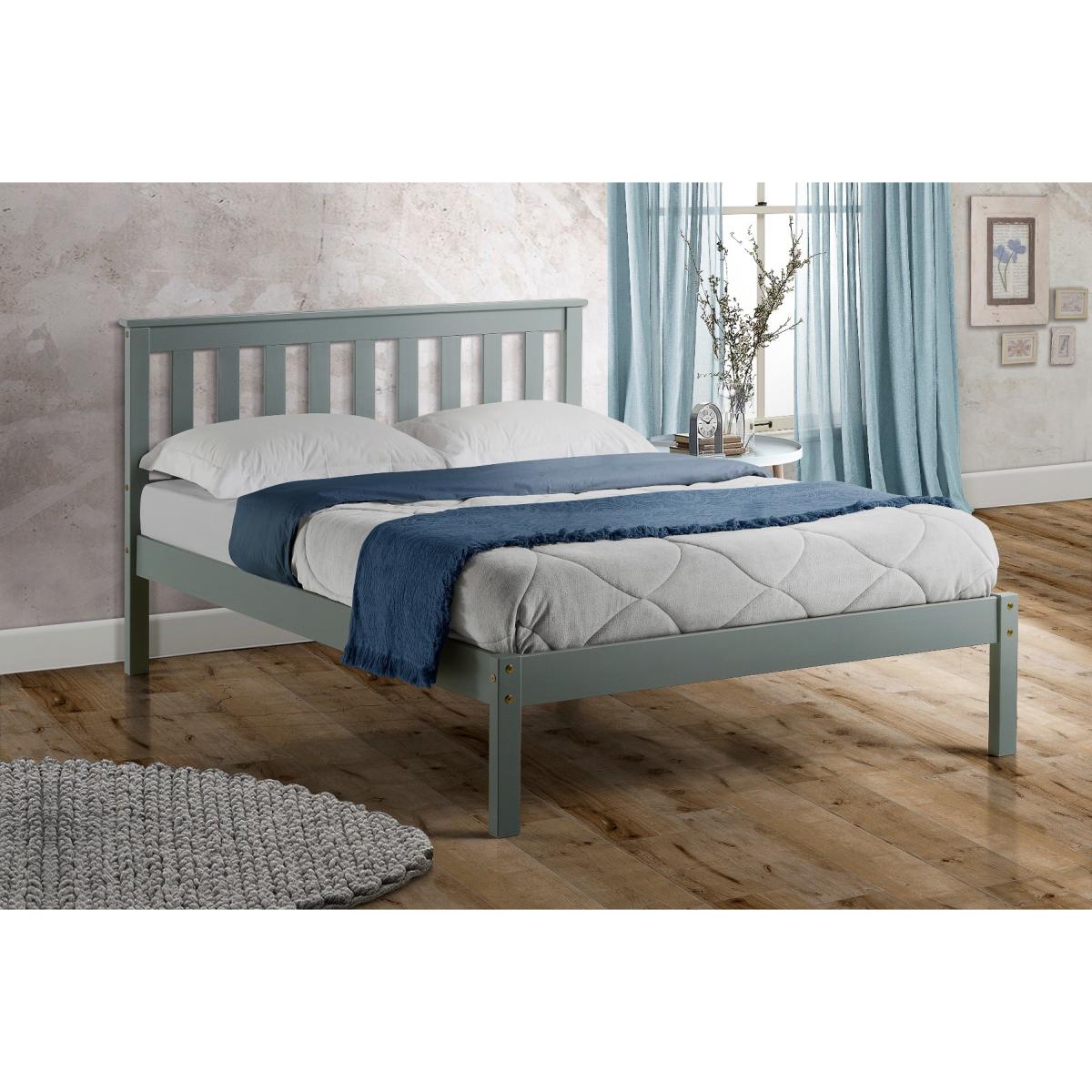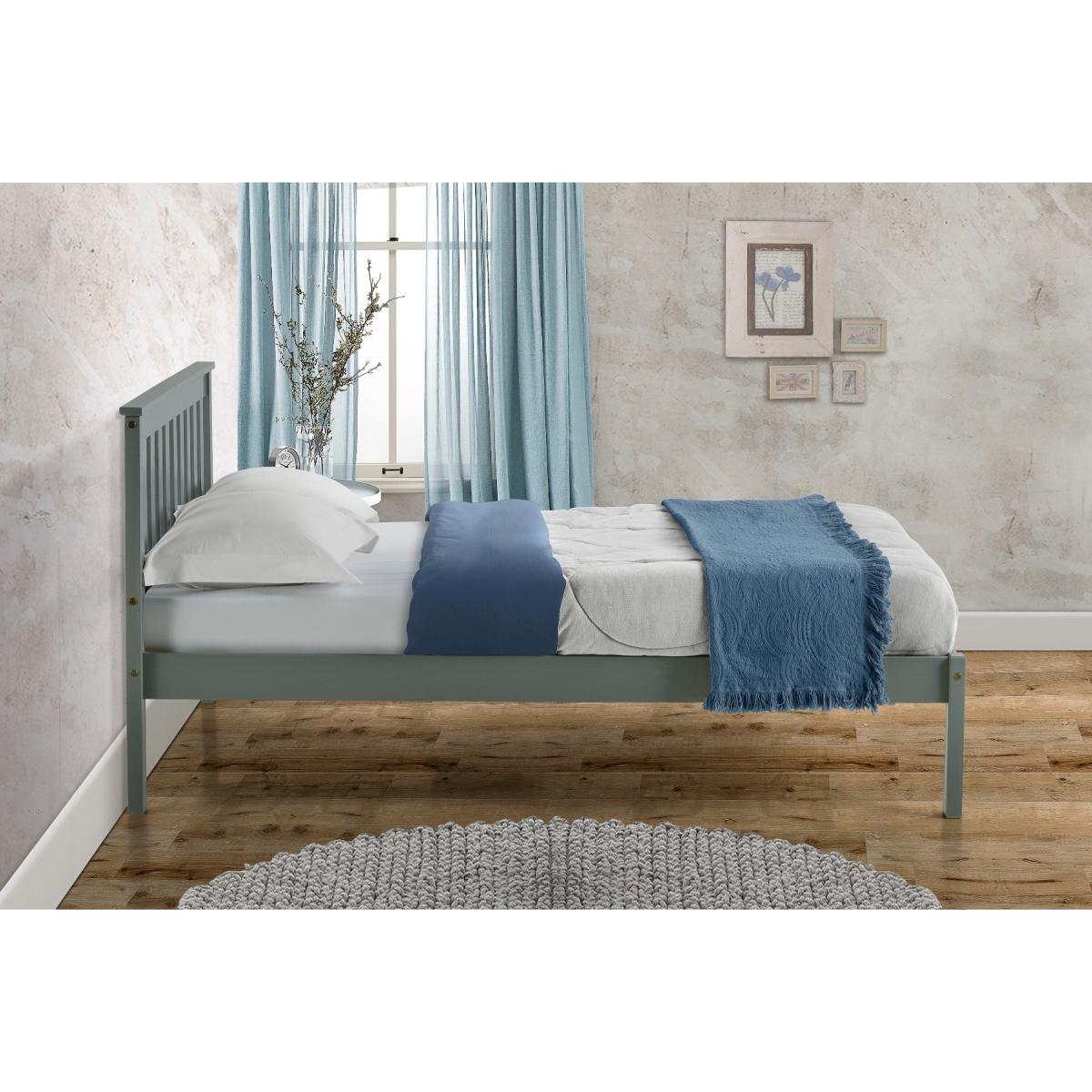 The Florida bed by Birlea is crafted in a typical Shaker style, giving it a classic, heritage feel. The sturdy frame is constructed from solid pine and has a solid, slatted base for firmer support. It’s finished in an on-trend subtle grey, ideal for pairing with other items from the Florida range. Shaker styling Solid pine construction Easy to assemble Finished in a beautiful soft grey